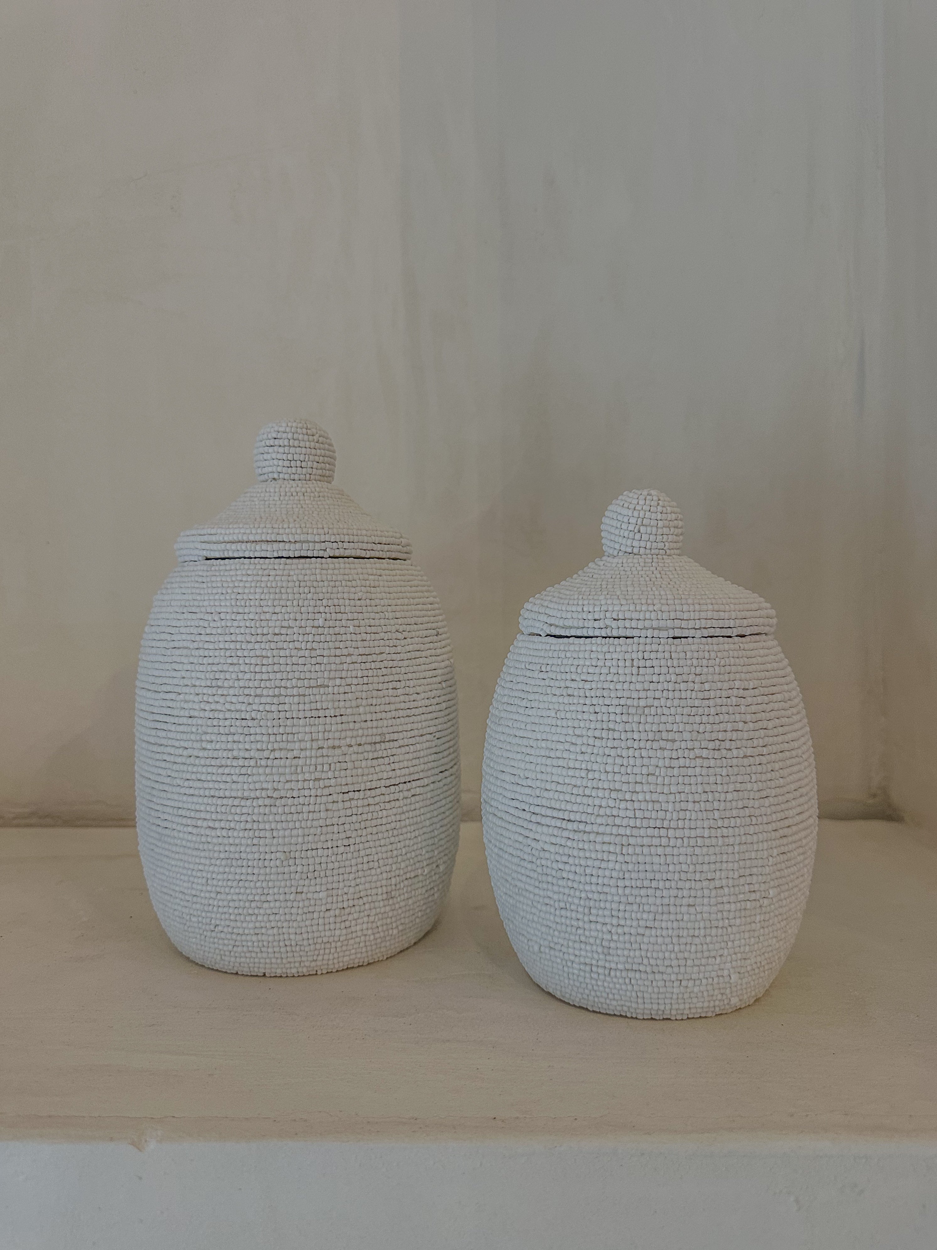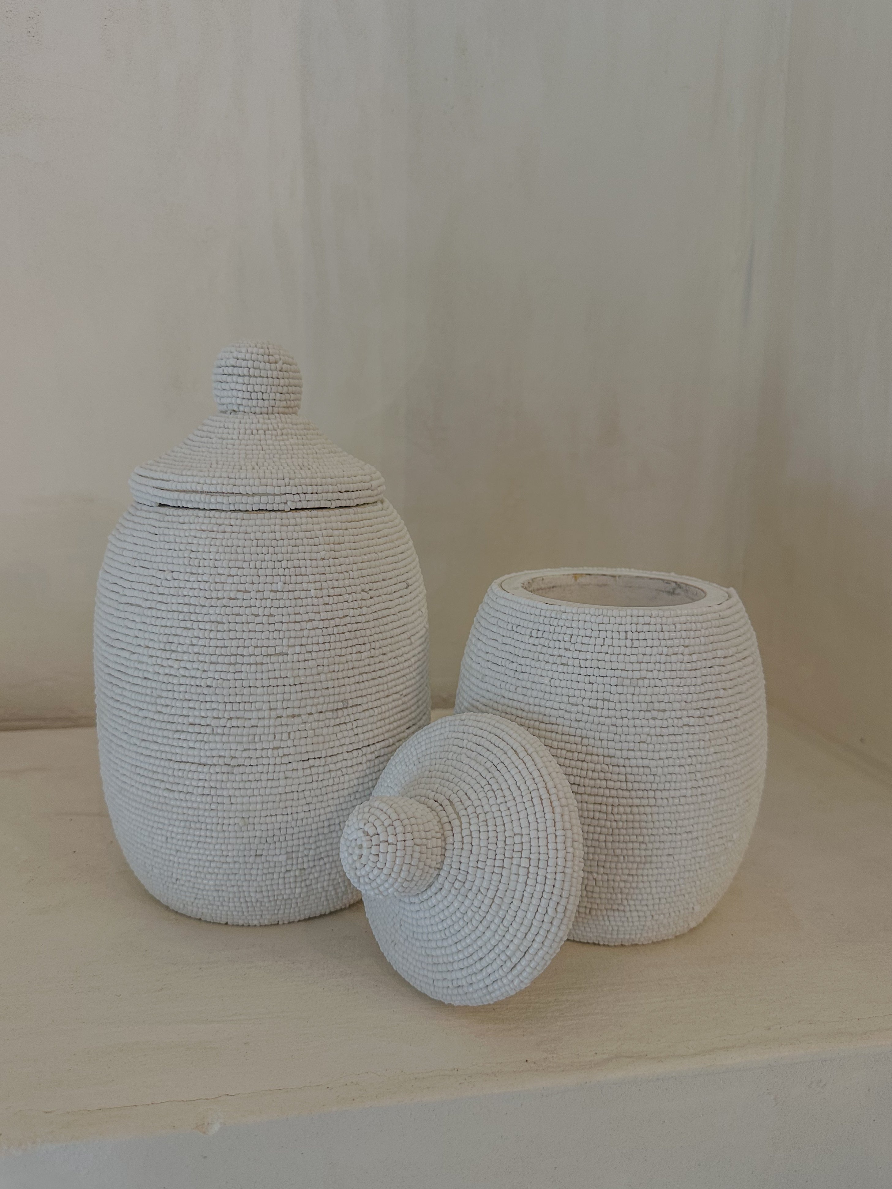 Bali Pot – Wit Glaskralen (20 & 25 cm)