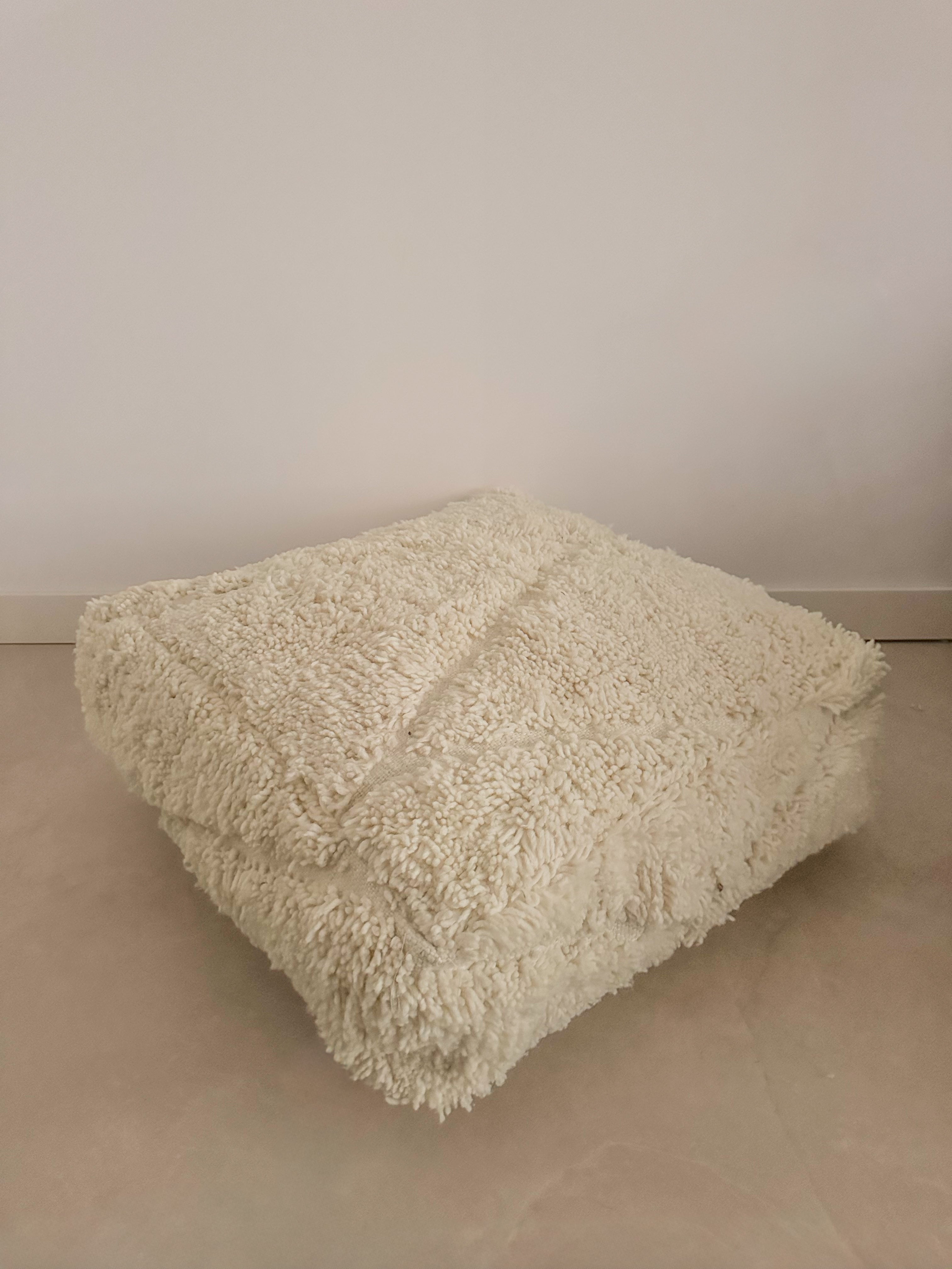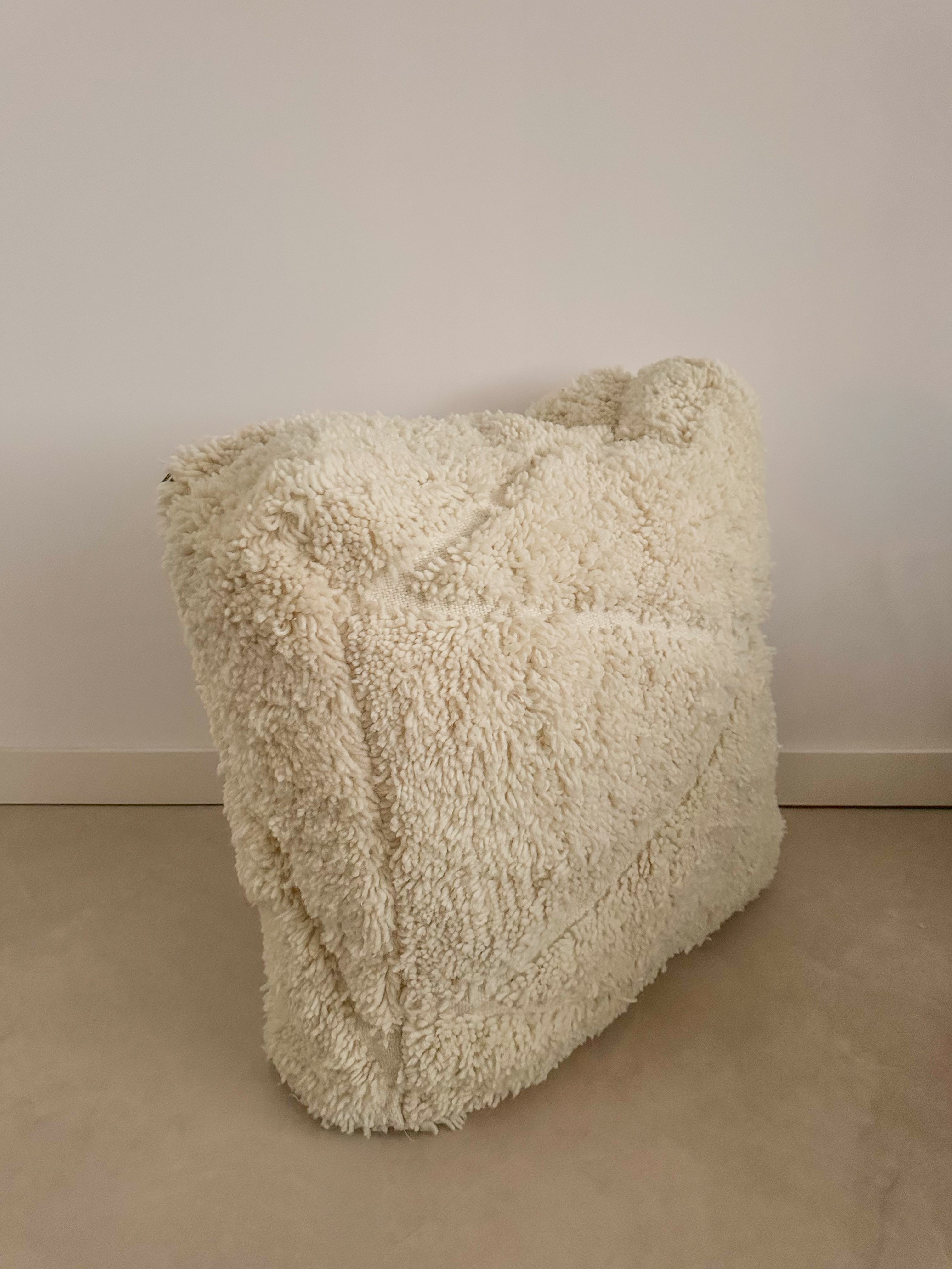 Elke poef is met de hand gemaakt van schapenwol en katoen en is een uniek meesterwerk! De poef is een echt statement-stuk, de natuurlijke kleuren en zachte uitstraling van de poef maakt het tot een prachtig stijlvol item dat warmte en karakter geeft aan elke ruimte.