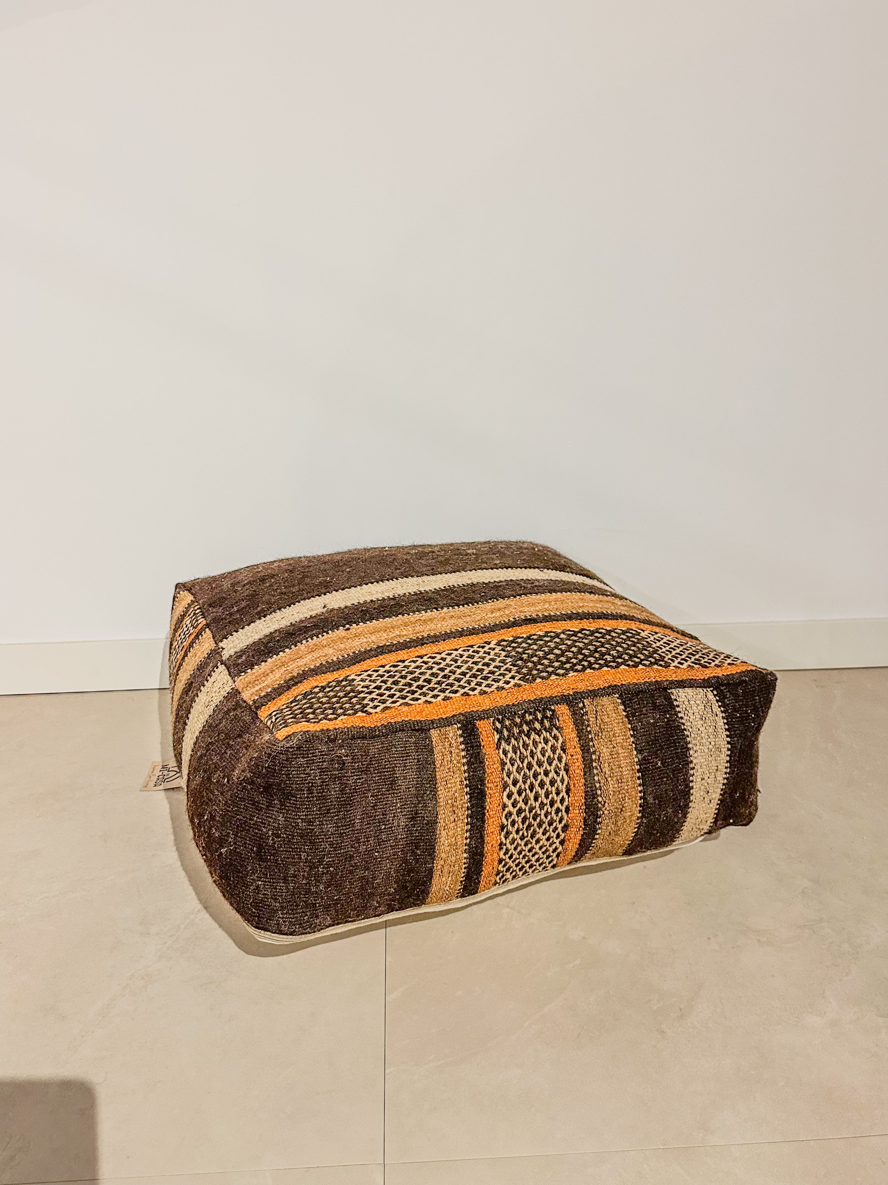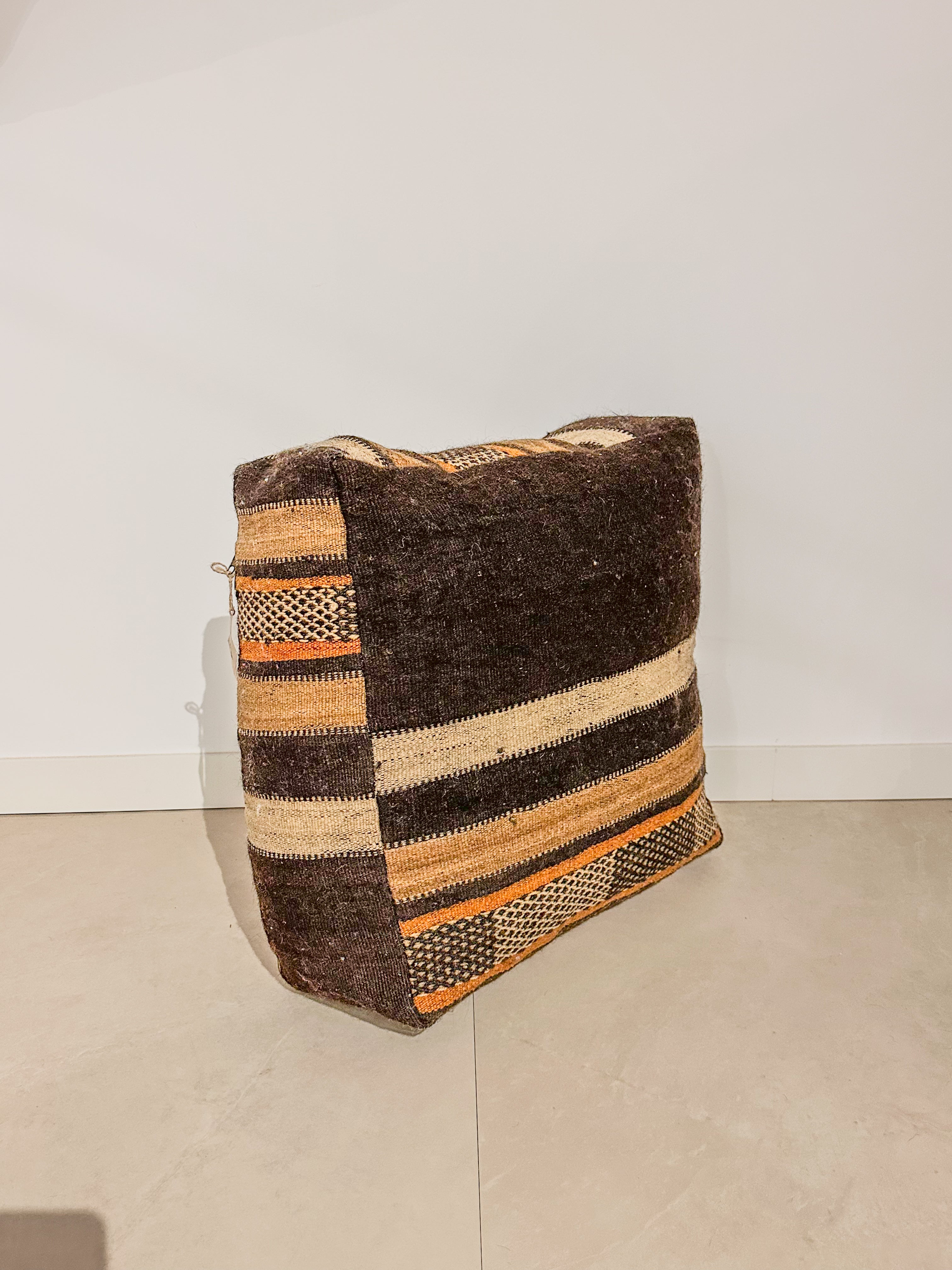 Elke poef is met de hand gemaakt van een vintage Marokkaans tapijt en is een uniek meesterwerk! De poef is een echt statement-stuk, de rijke kleuren en karakteristieke uitstraling van de poef maken het tot een opvallend item dat warmte en karakter geeft aan elke ruimte.