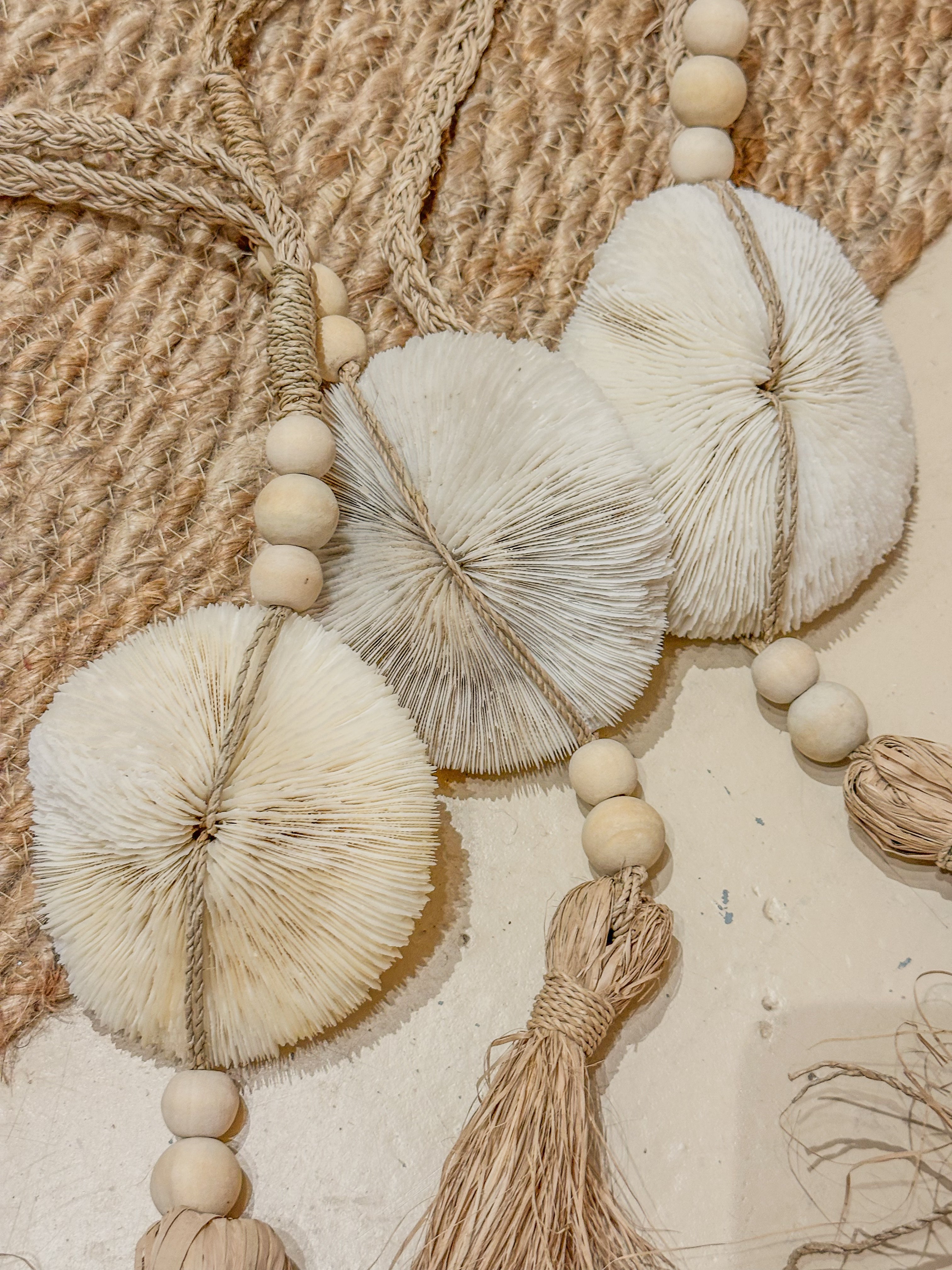 ✔ Handgemaakt van natuurlijke materialen ✔ Lengte ca. 70 cm ✔ Elk stuk is uniek ✔ Perfect voor een bohemian of coastal interieurstijl