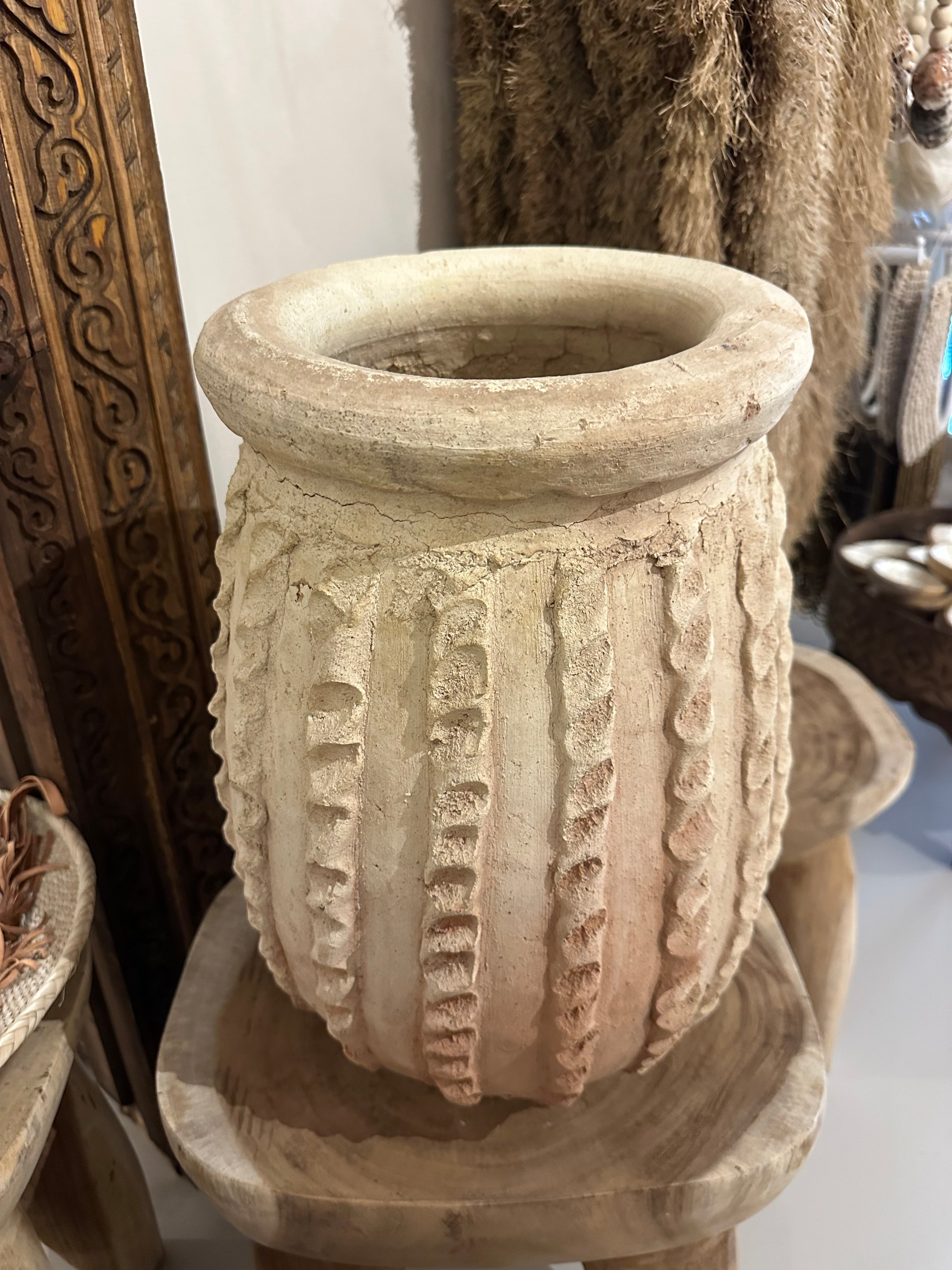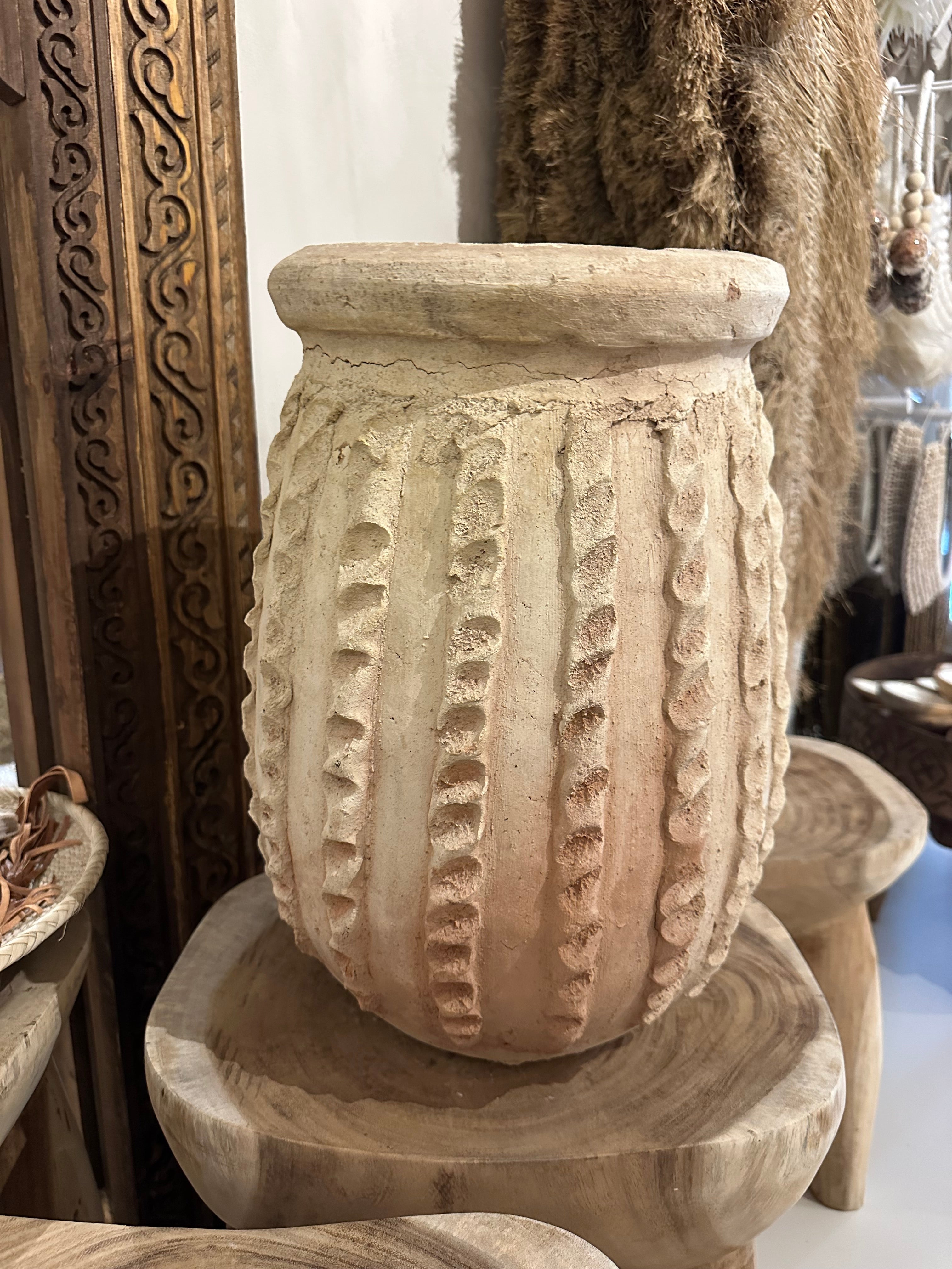 De warme overwegende terra en naturel gemêleerde tinten geven de vaas een natuurlijke, doorleefde uitstraling die moeiteloos past in zowel een modern als een bohemien interieur. Dankzij het ambachtelijke proces is geen enkel exemplaar hetzelfde, kleine verschillen in vorm, kleur en afmeting maken juist de charme en authenticiteit van dit bijzondere stuk uit.