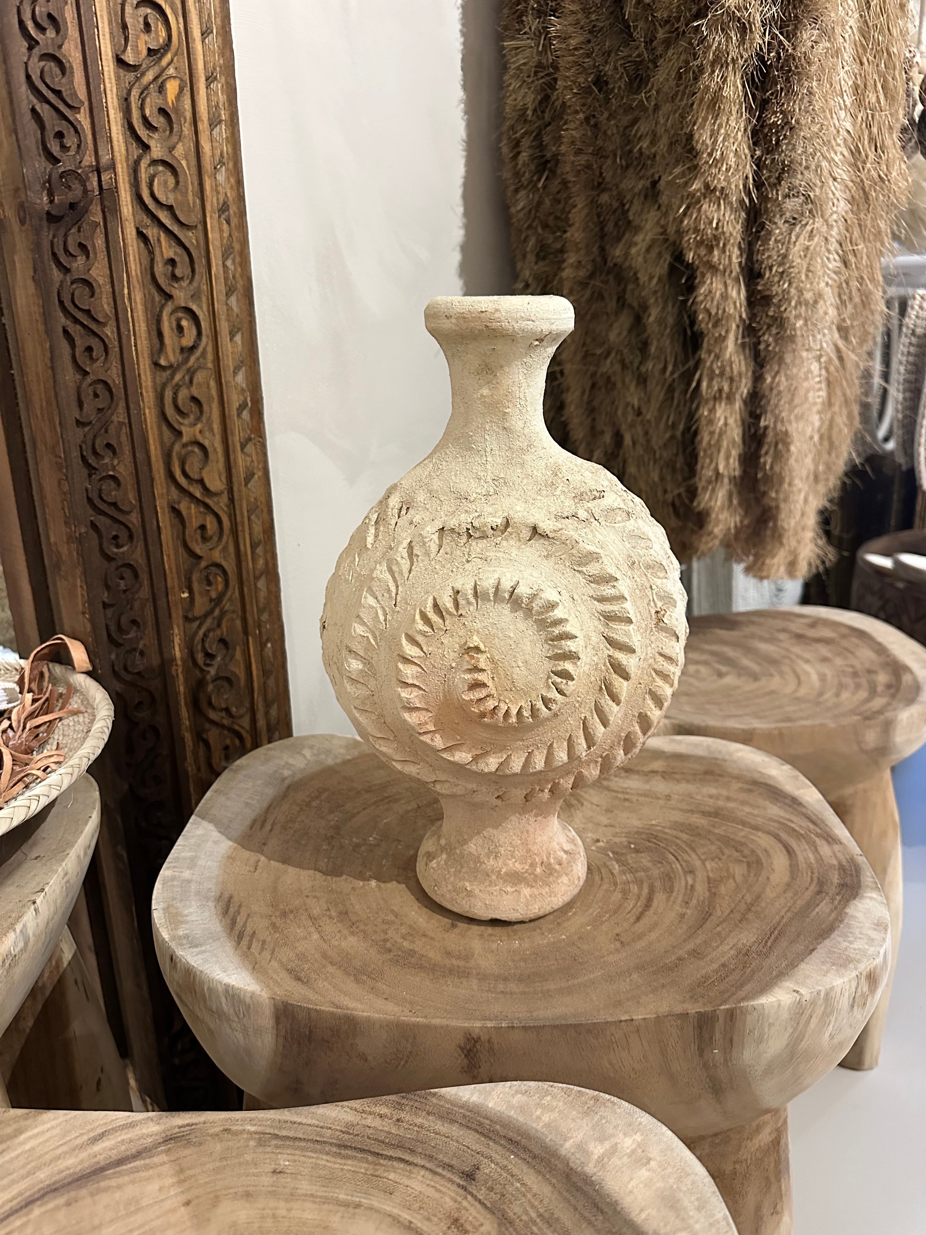 De warme terra en naturel gemêleerde tinten geven de vaas een natuurlijke, doorleefde uitstraling die moeiteloos past in zowel een modern als een bohemien interieur. Dankzij het ambachtelijke proces is geen enkel exemplaar hetzelfde, kleine verschillen in vorm, kleur en afmeting maken juist de charme en authenticiteit van dit bijzondere stuk uit.