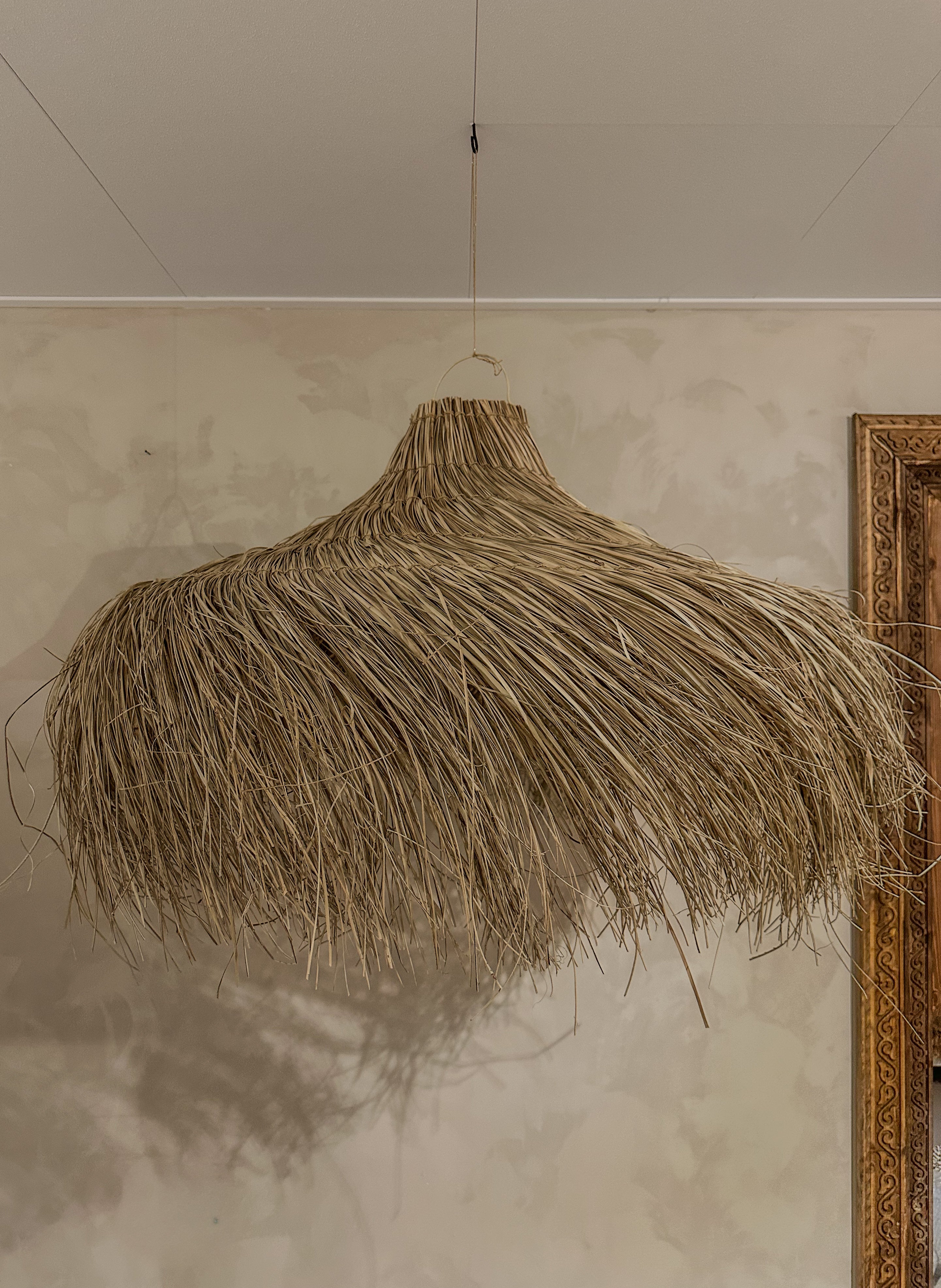 De speels vallende vezels zorgen voor een prachtig lichtspel en een natuurlijke, ontspannen uitstraling. Perfect boven een eettafel, in de woonkamer of onder een overkapping. Door het ambachtelijke vlechtwerk en het gebruik van natuurlijke materialen is elke lamp uniek in vorm en kleur.
