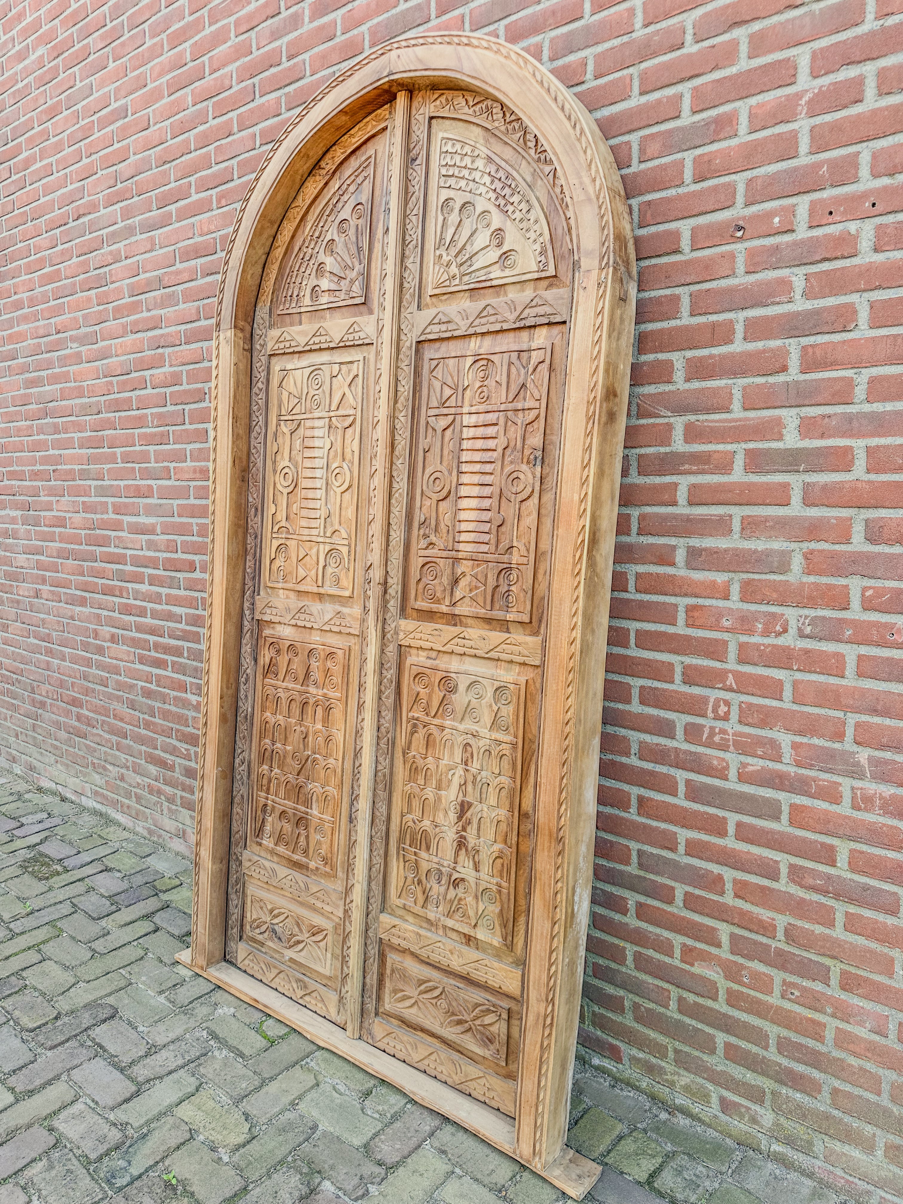 Met deze teak boogdeuren haal je een stukje exotische elegantie in huis – een functioneel object én een kunstwerk tegelijk.