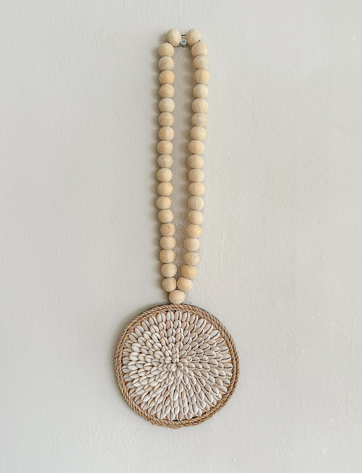 Breng natuurlijke warmte en elegantie in je interieur met deze handgemaakte decoratieve ketting. De combinatie van hout en schelpen, maakt deze ketting een uniek en tijdloos accessoire. De natuurlijke materialen en neutrale tinten zorgen voor een rustieke uitstraling die in elke woonstijl past.