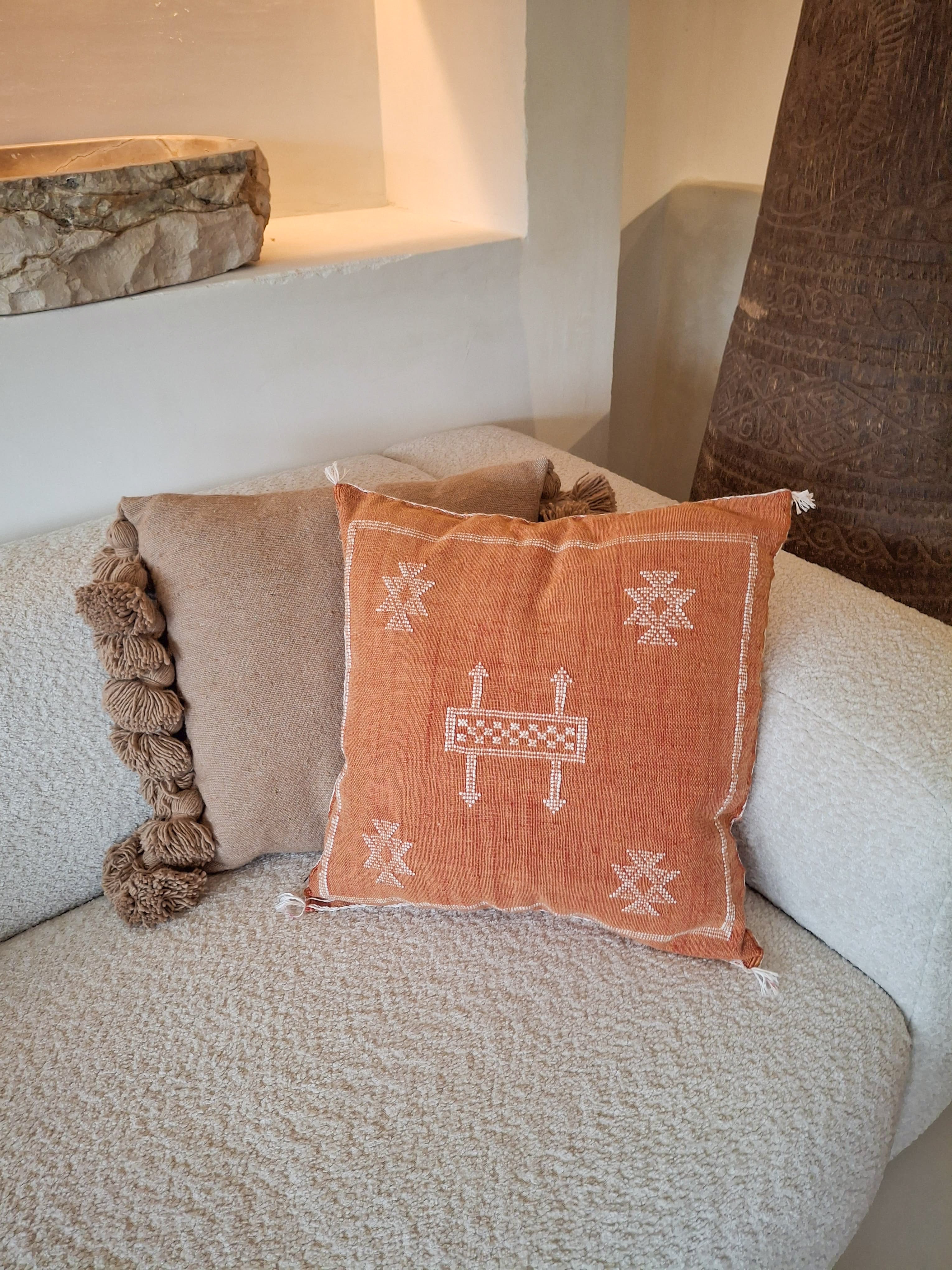 Ontdek de charme van authentiek vakmanschap met onze unieke kussenhoezen, met de hand gemaakt in Marokko. Elke hoes is een op zichzelf staand kunstwerk, met zorg vervaardigd door lokale ambachtslieden. Geen enkel exemplaar is hetzelfde subtiele variaties in kleur, patroon en textuur maken jouw kussen écht bijzonder.