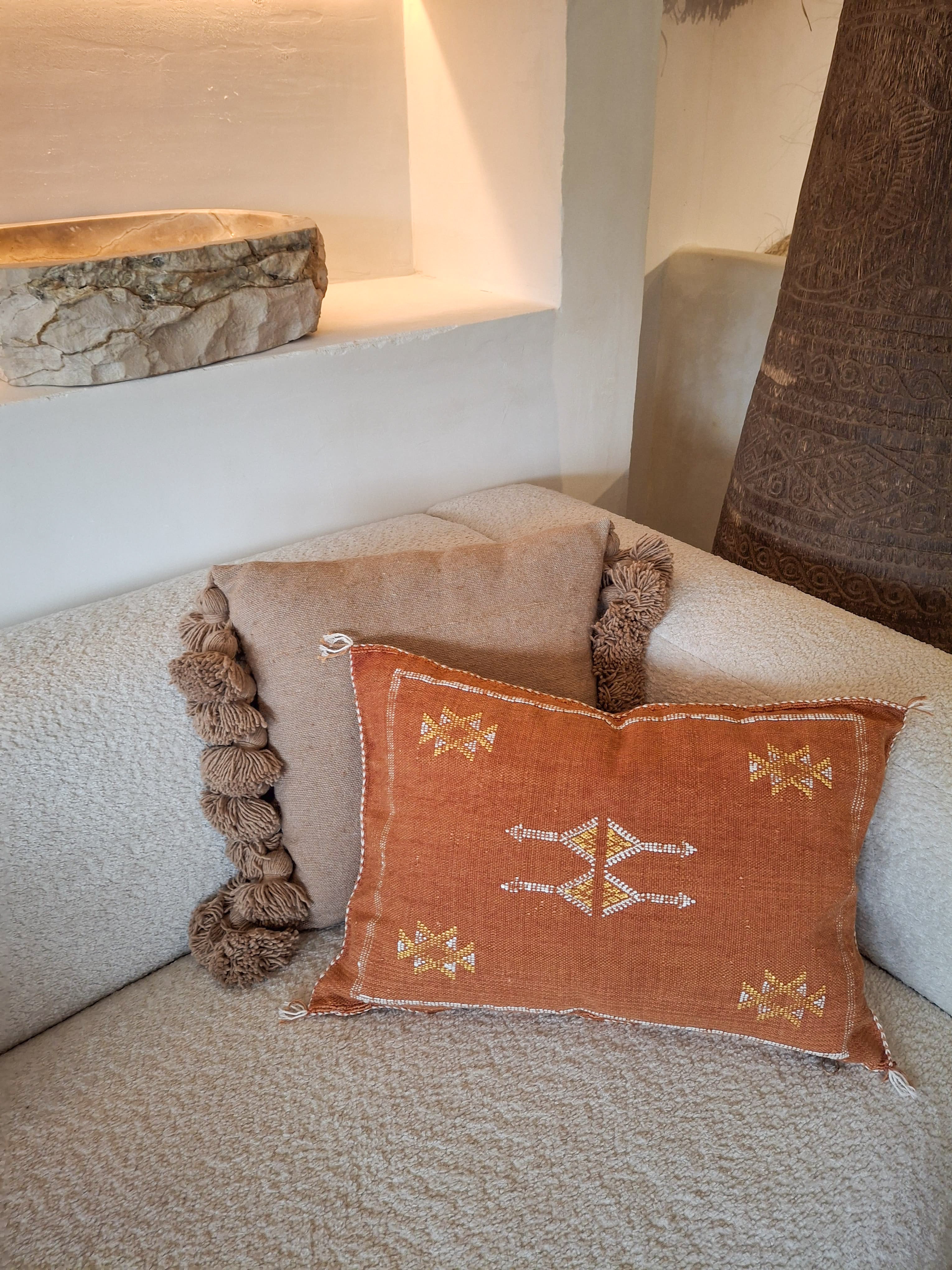 Ontdek de charme van authentiek vakmanschap met onze unieke kussenhoezen, met de hand gemaakt in Marokko. Elke hoes is een op zichzelf staand kunstwerk, met zorg vervaardigd door lokale ambachtslieden. Geen enkel exemplaar is hetzelfde subtiele variaties in kleur, patroon en textuur maken jouw kussen écht bijzonder.