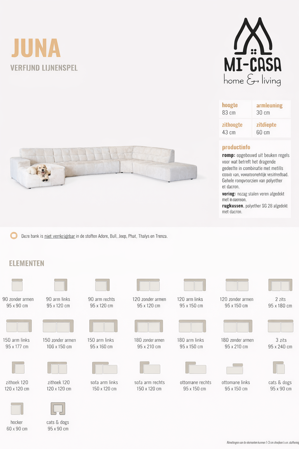 Juna is volledig naar eigen wens samen te stellen in verschillende opstellingen, stoffen en kleuren.