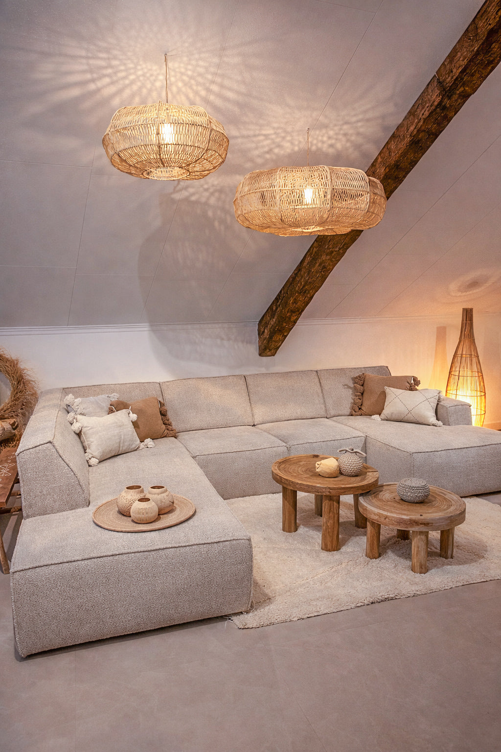 Alle elementen van Nova zijn volledig doorgestoffeerd aan de zijkanten. Hierdoor kun je eindeloos schuiven, combineren en de opstelling aanpassen aan jouw ruimte en woonwensen. (Uitgezonderd de elementen zithoek vast en hocker.)