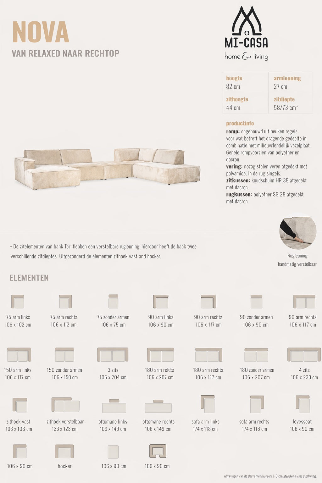 Nova is volledig naar eigen wens samen te stellen in verschillende opstellingen, stoffen en kleuren.