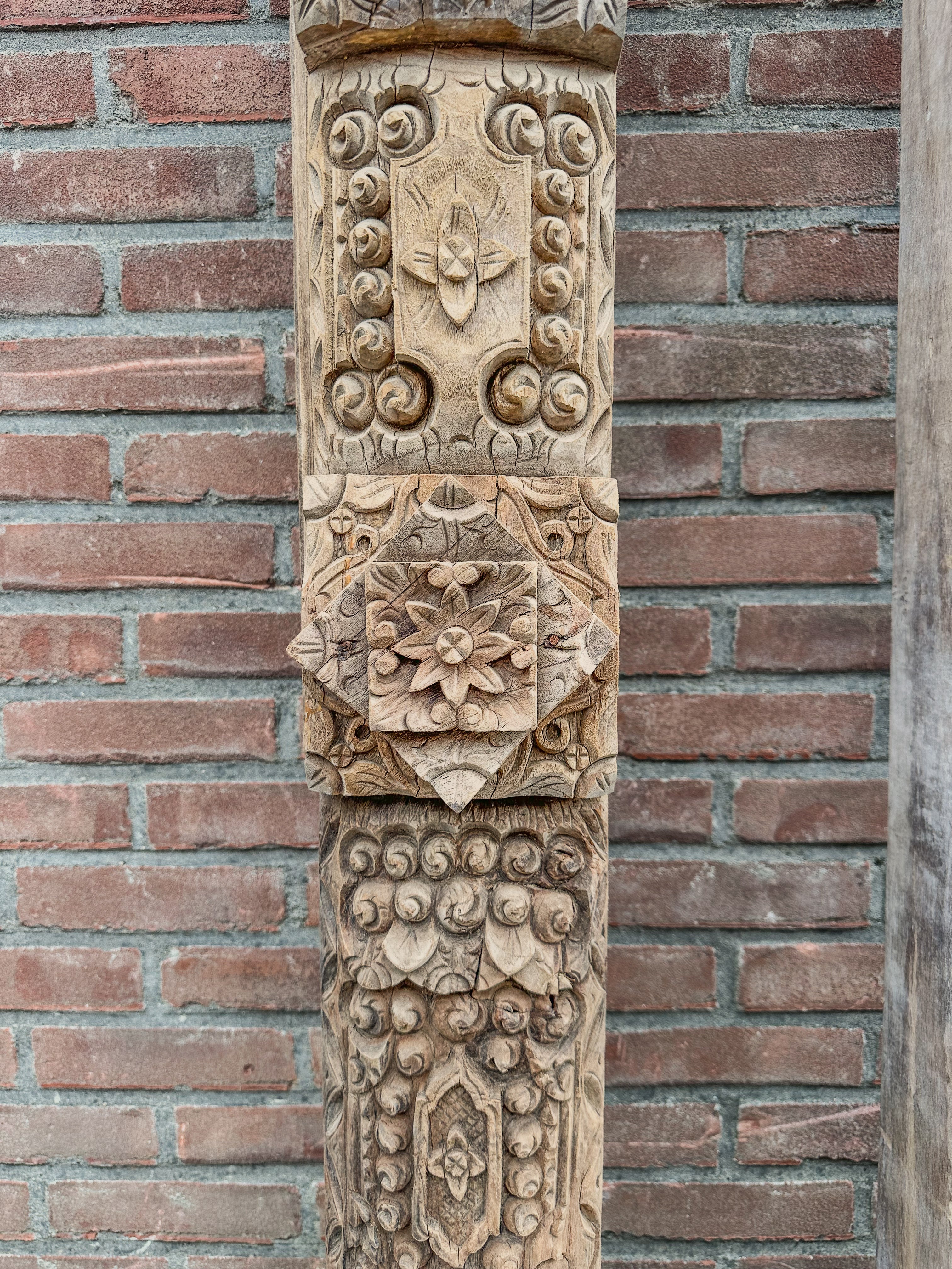 Ontdek de schoonheid van authentiek vakmanschap met deze Indonesische teak houten pilaren.