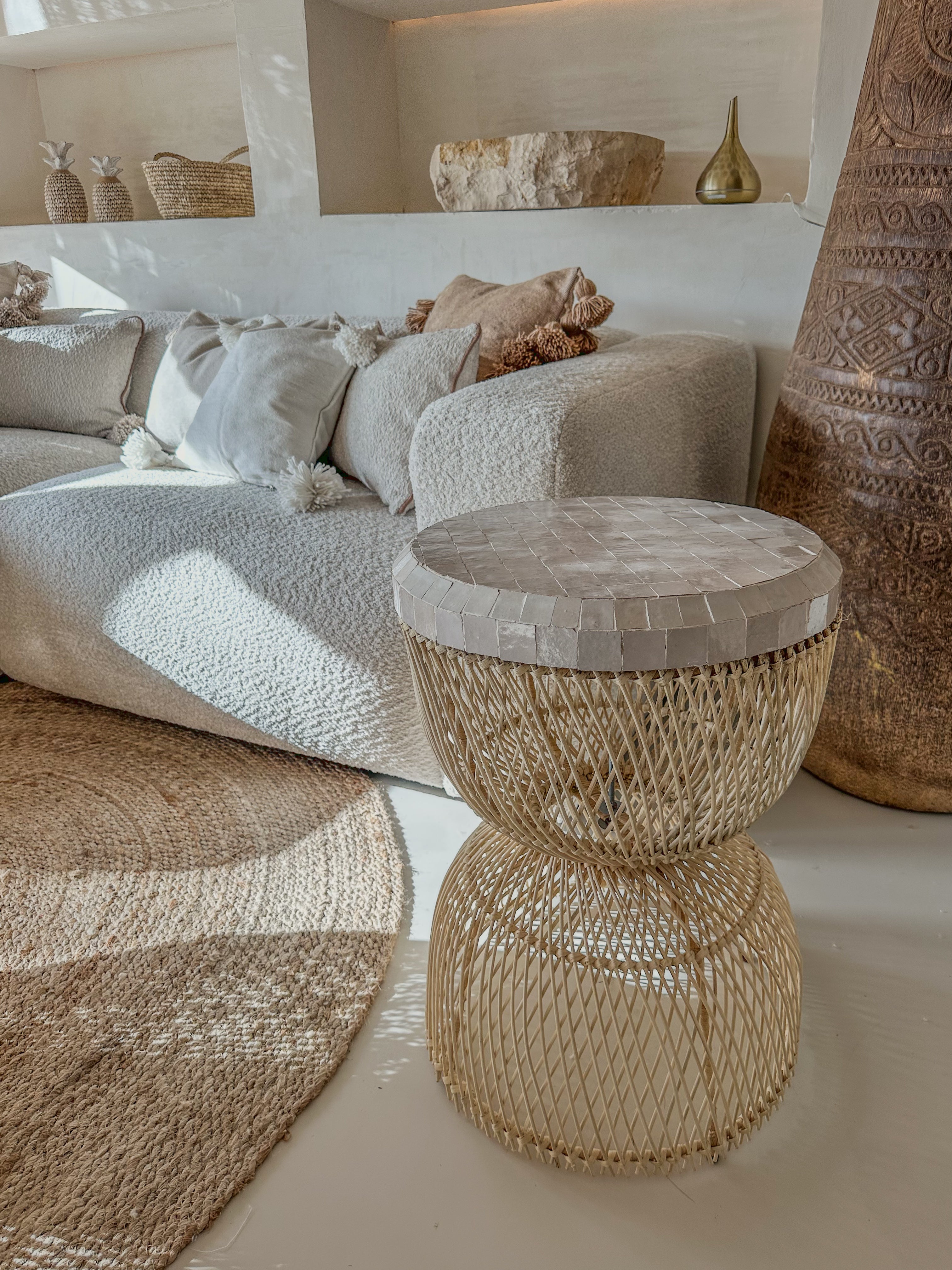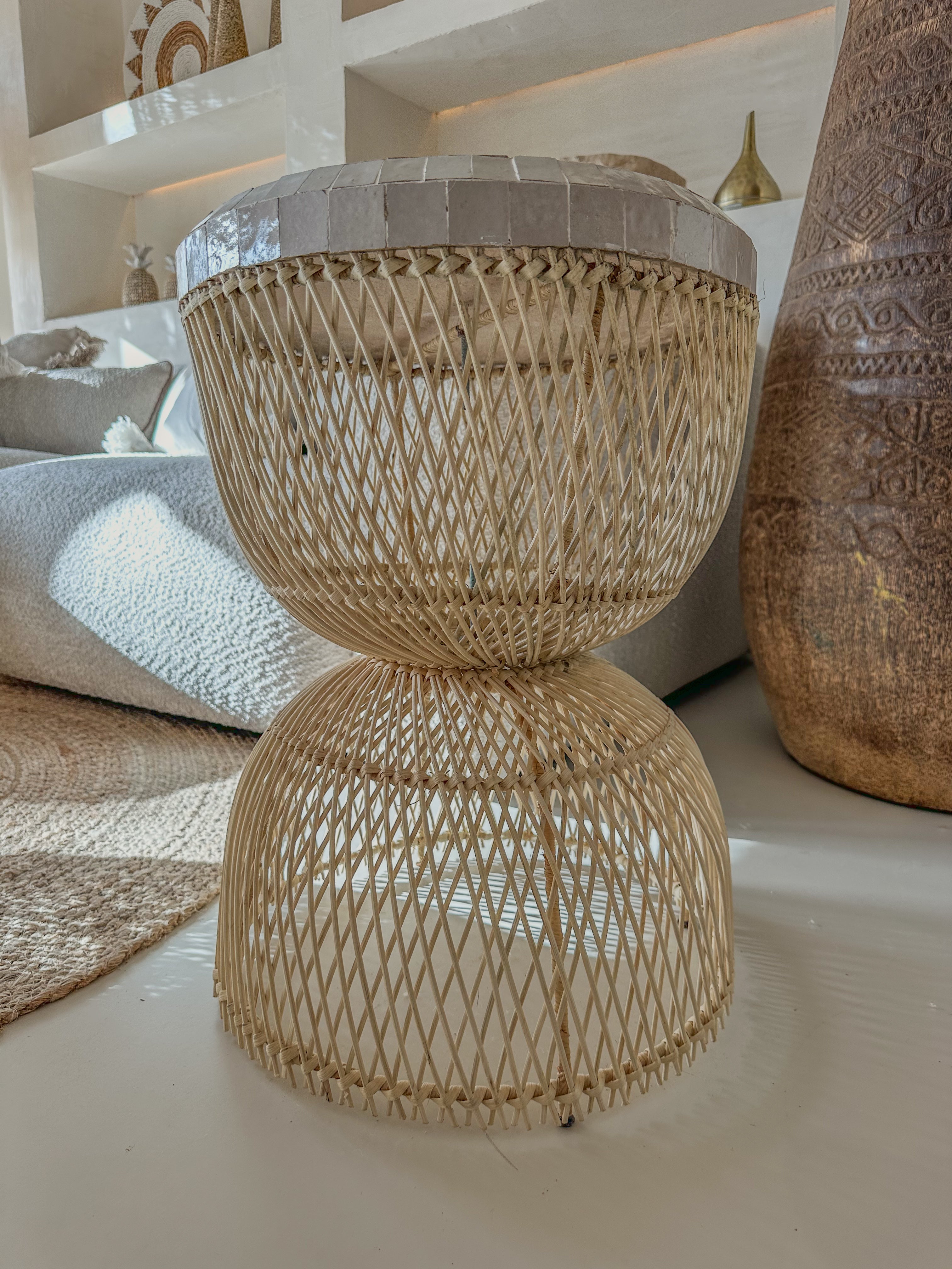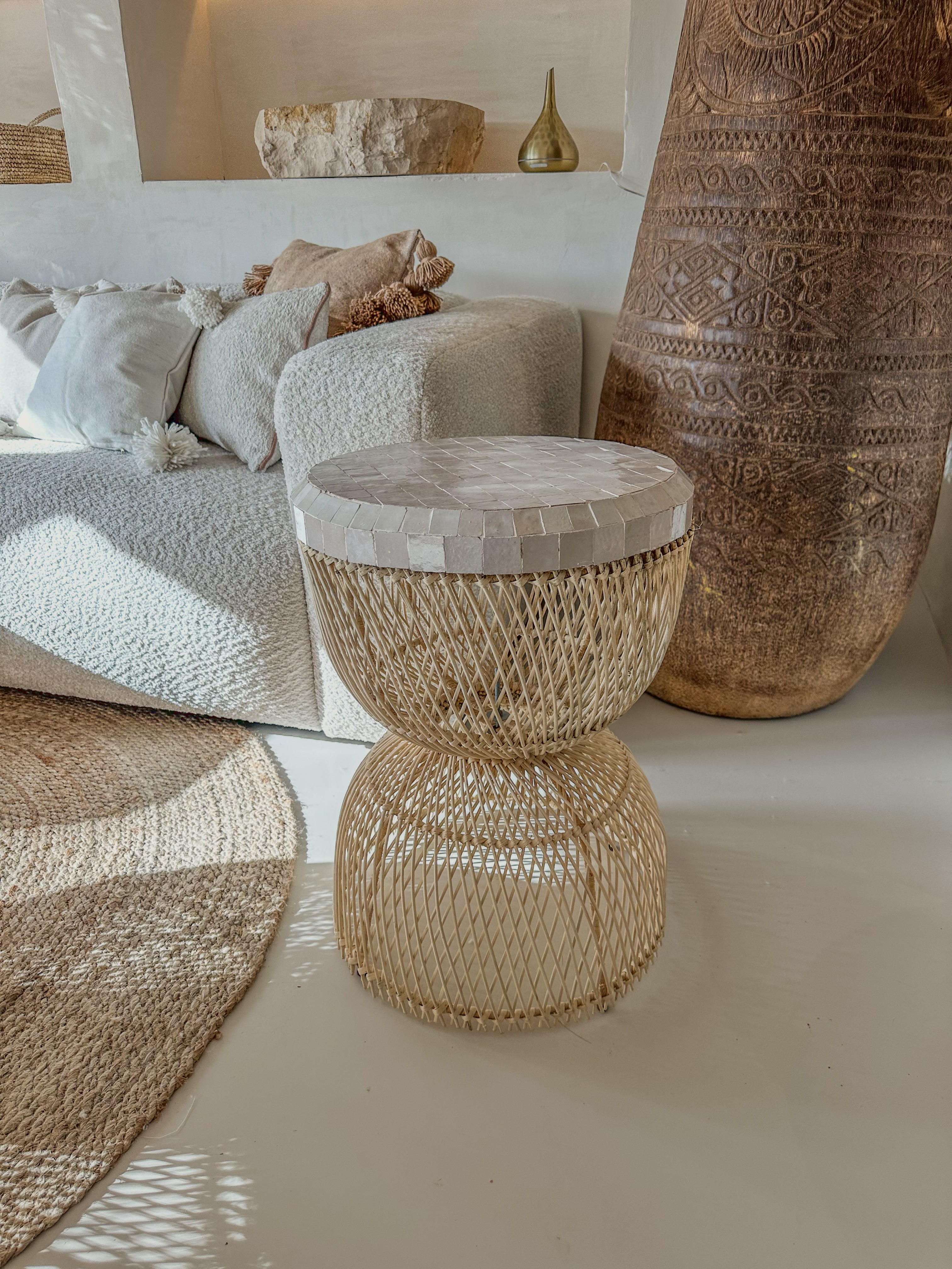 Salontafel Rotan met Zellige Tegels – Handgemaakt in Marokko | Ø40 cm