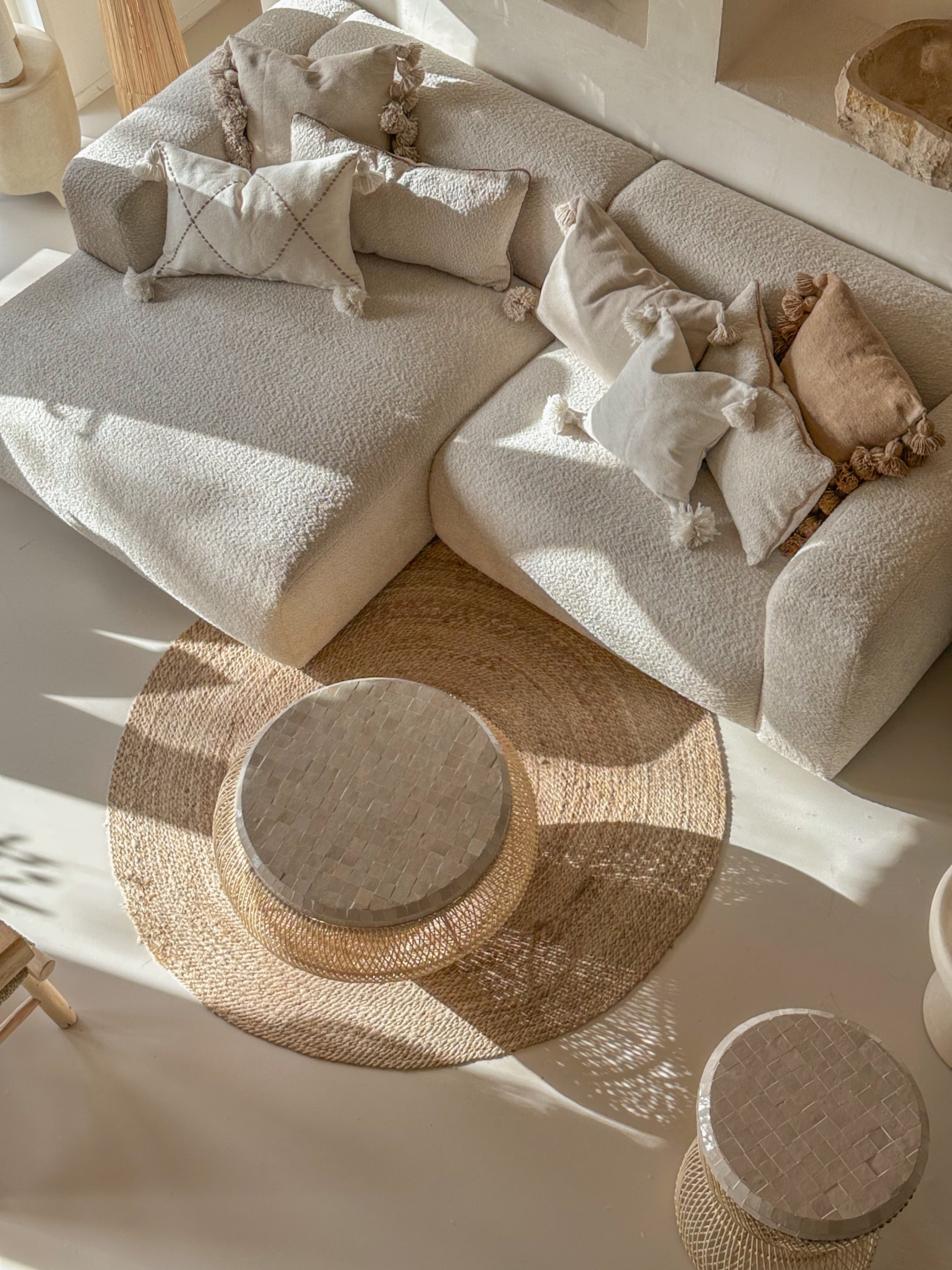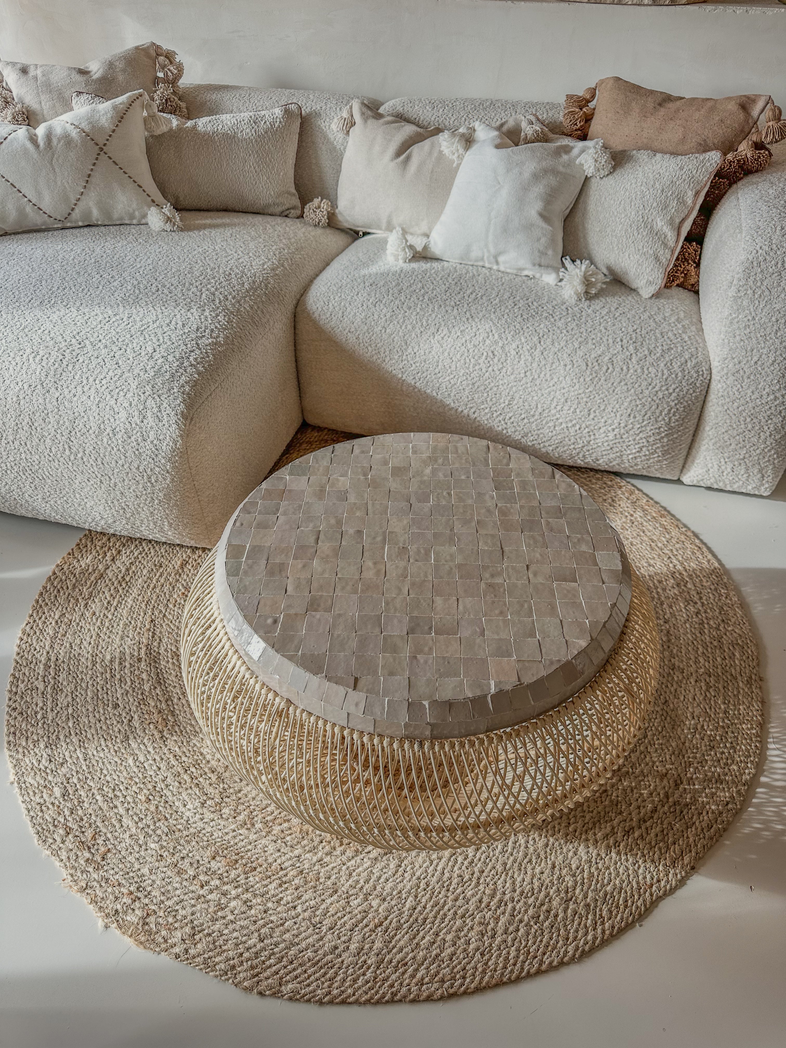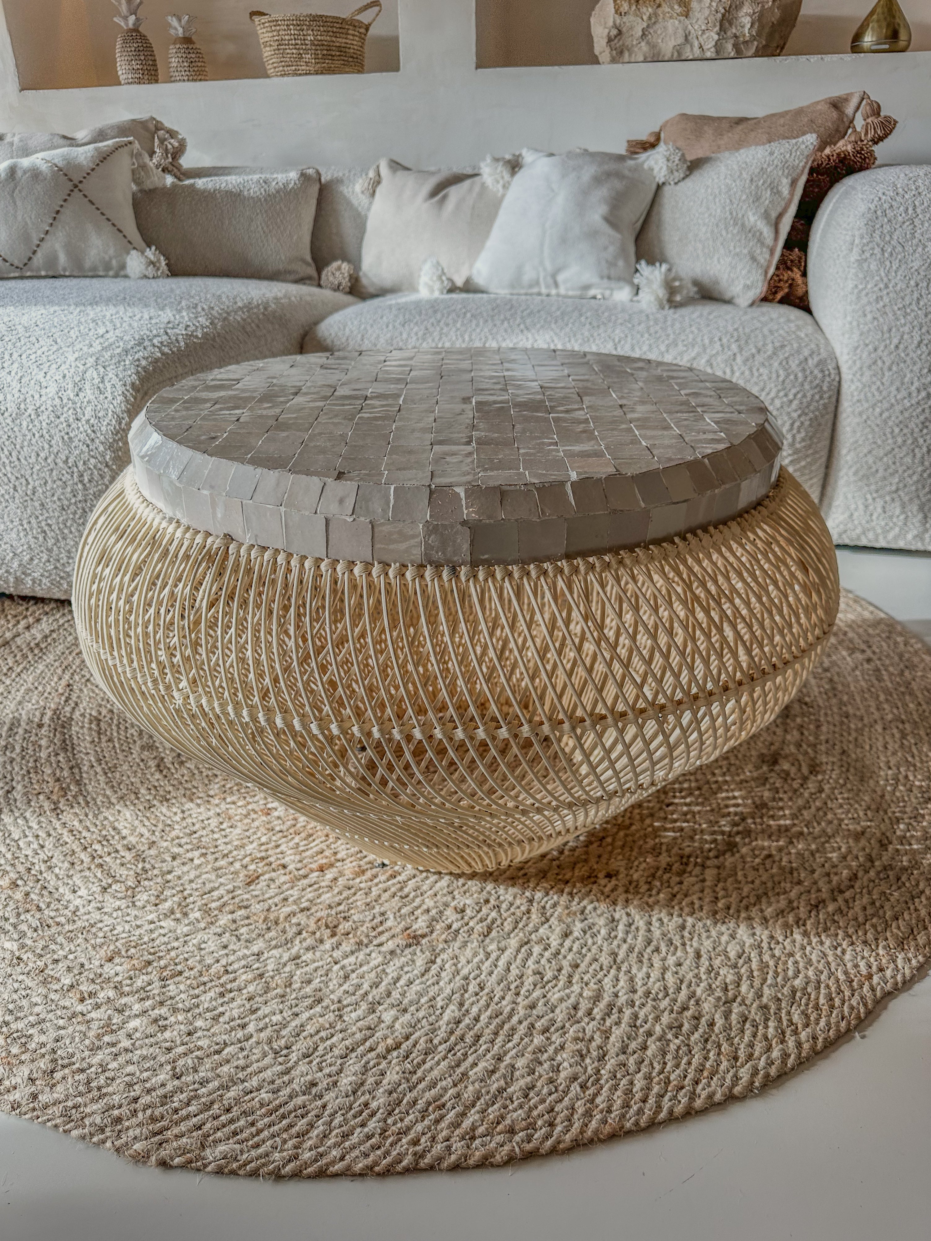 Salontafel Rotan met Zellige Tegels – Handgemaakt in Marokko | Ø70 cm