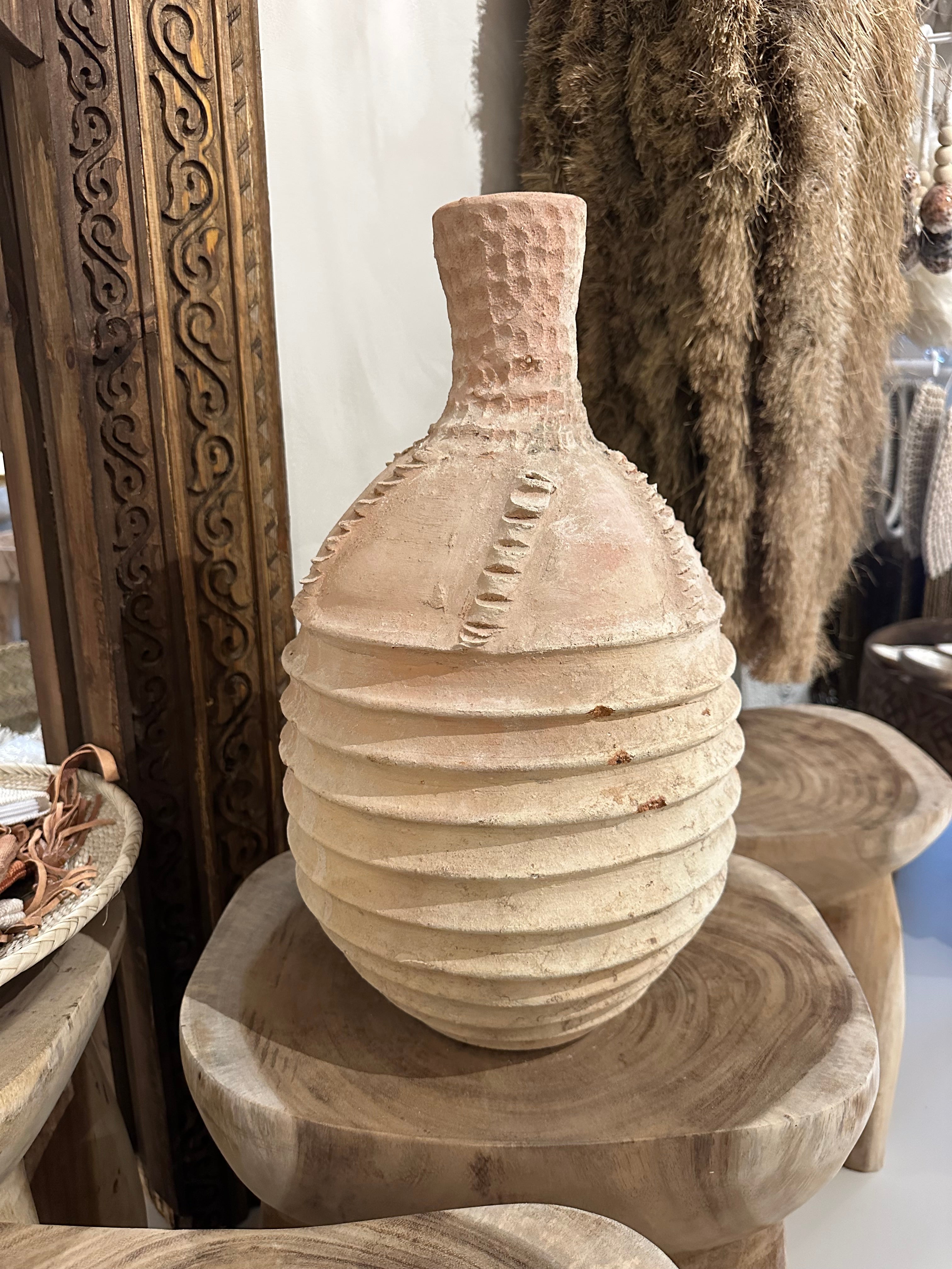 De warme terra en naturel gemêleerde tinten geven de vaas een natuurlijke, doorleefde uitstraling die moeiteloos past in zowel een modern als een bohemien interieur. Dankzij het ambachtelijke proces is geen enkel exemplaar hetzelfde, kleine verschillen in vorm, kleur en afmeting maken juist de charme en authenticiteit van dit bijzondere stuk uit.