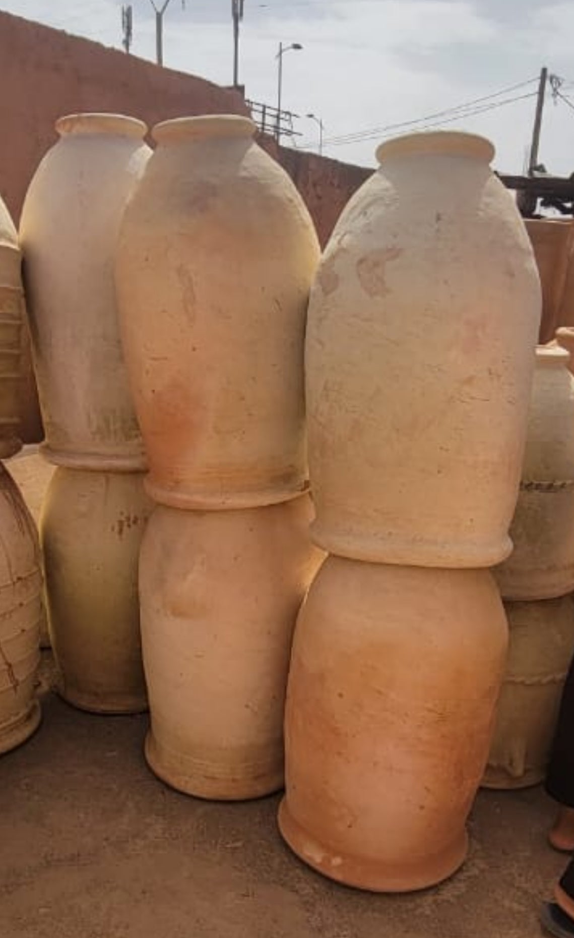 De pot wordt met de hand gevormd in het zuidelijke Marokkaanse dorp Tamegroute, waar pottenbakkers al generaties lang werken met lokale klei en traditionele ovens. Door dit ambachtelijke proces krijgt elke pot zijn eigen vorm, structuur en kleurschakering.
