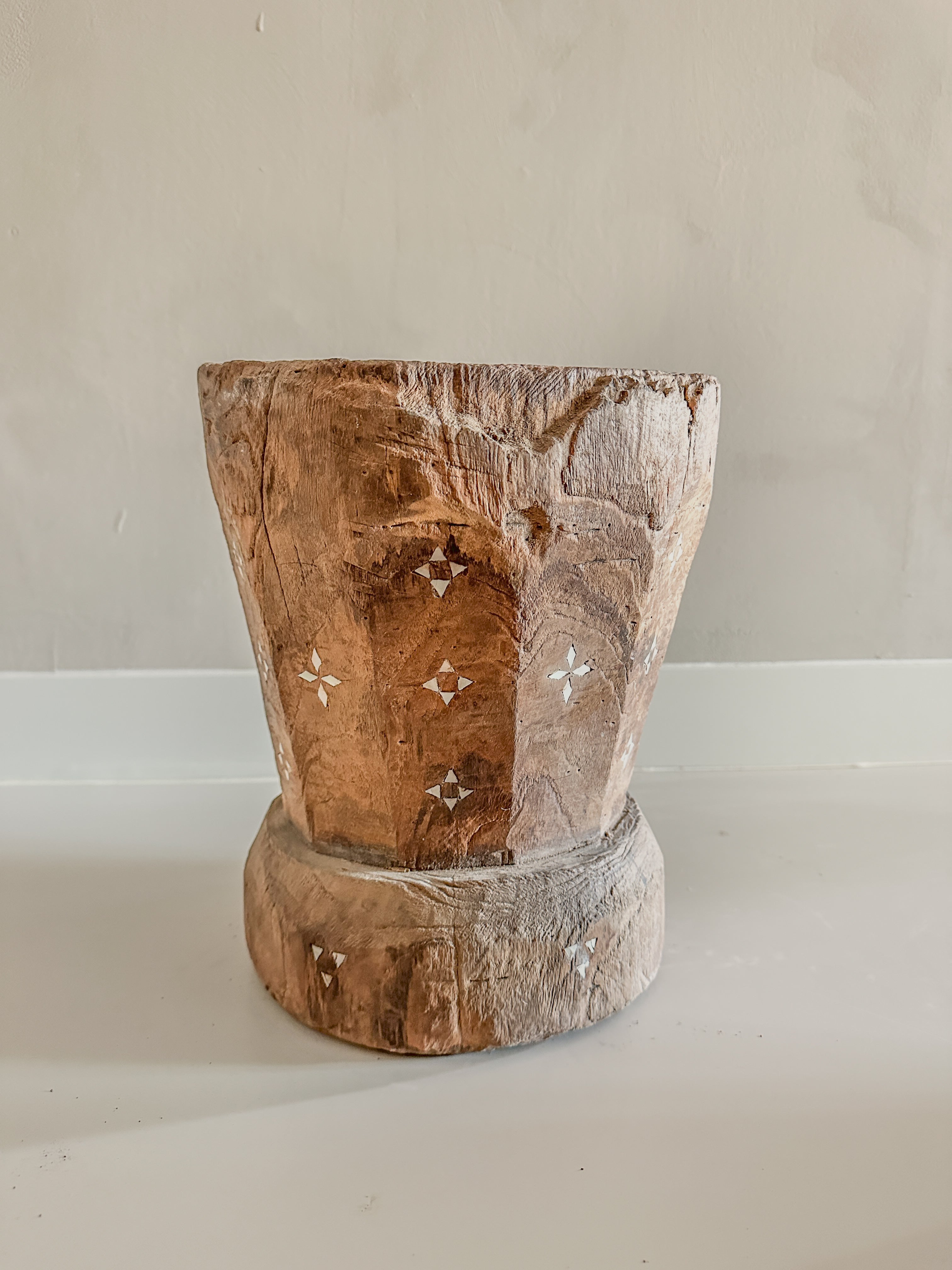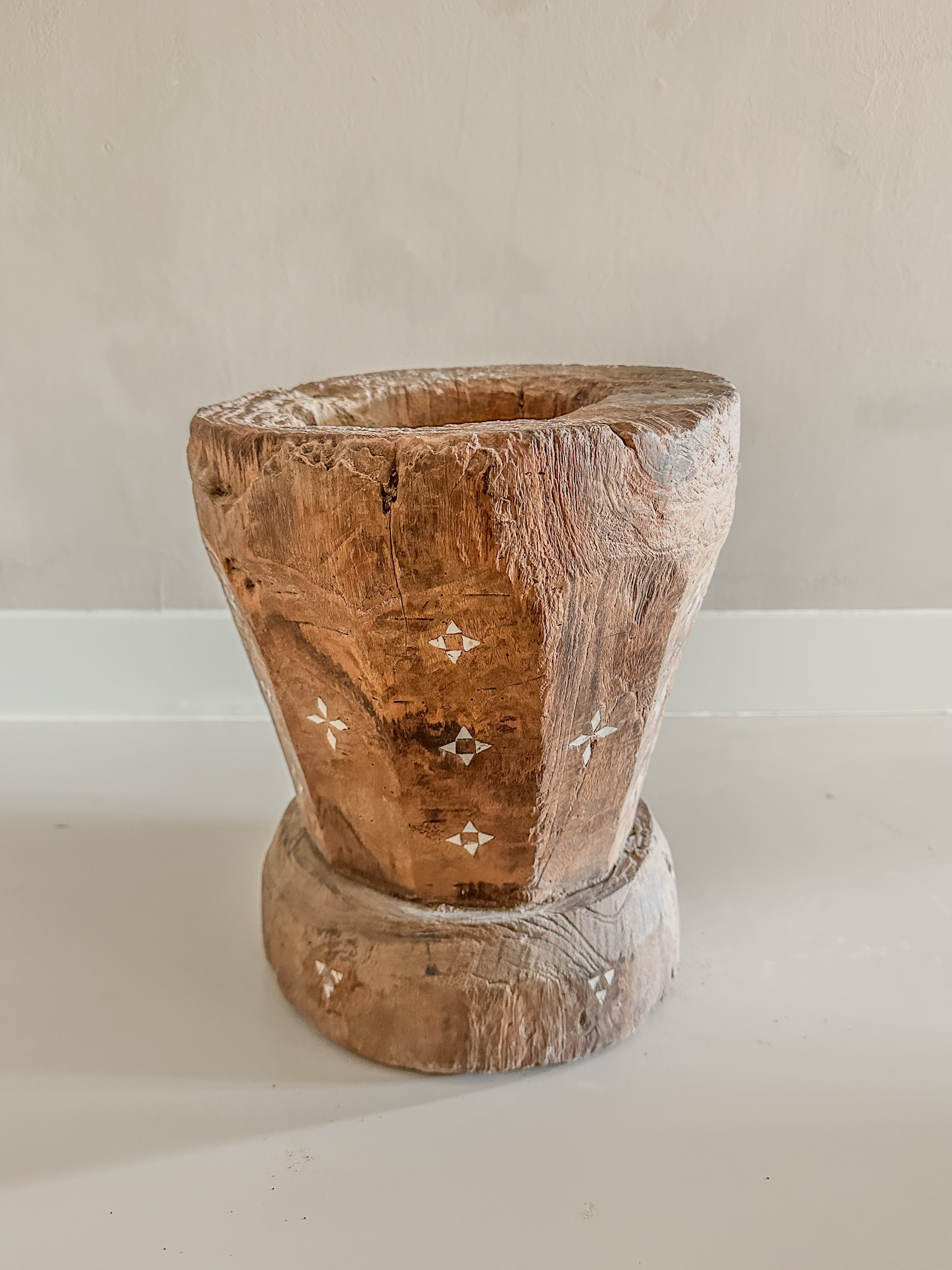 Door de natuurlijke vorm en structuur van het hout is geen enkel exemplaar hetzelfde. De hand ingelegde details geven elk stuk een eigen karakter – een prachtig accent voor in de woonkamer, hal of badkamer.