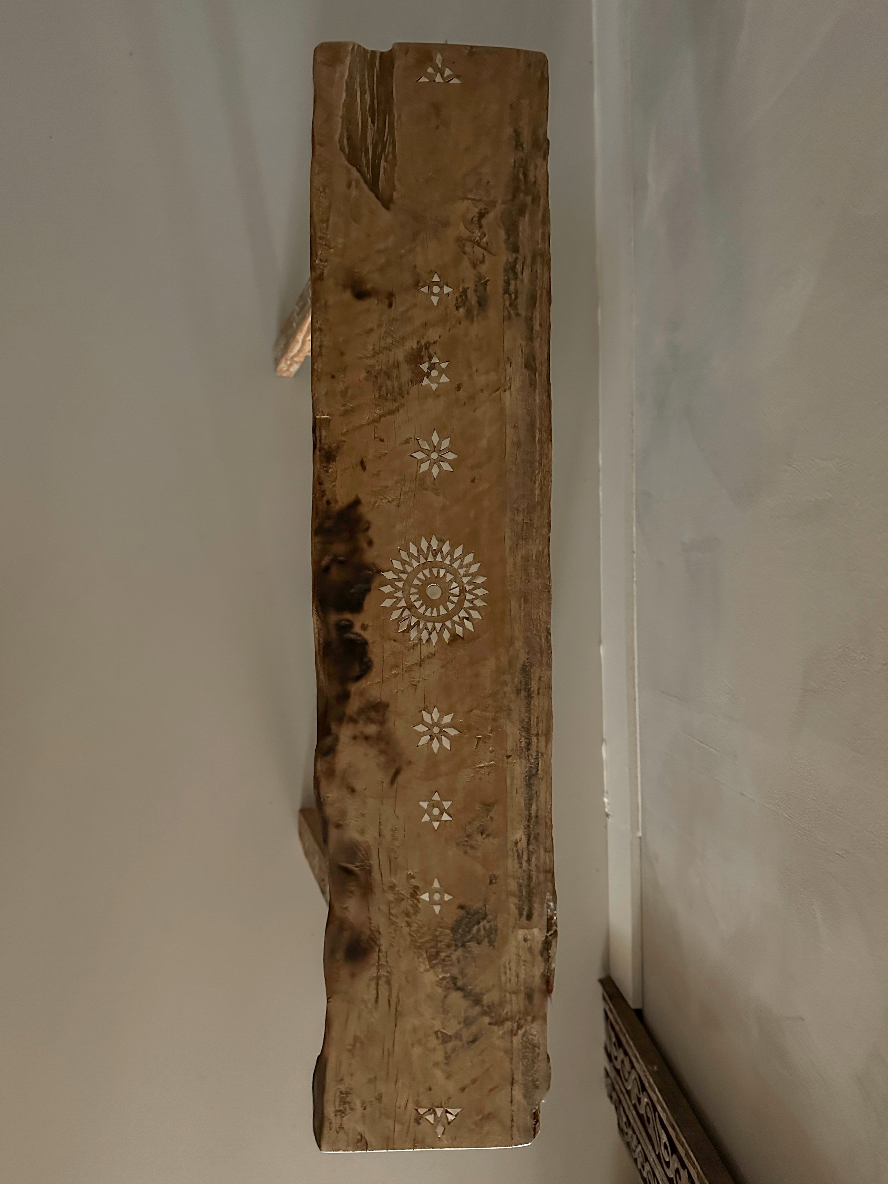 Dit prachtige houten bankje is handgemaakt van oud teak hout en versierd met subtiele ingelegde schelpjes in traditionele motieven. Elk...