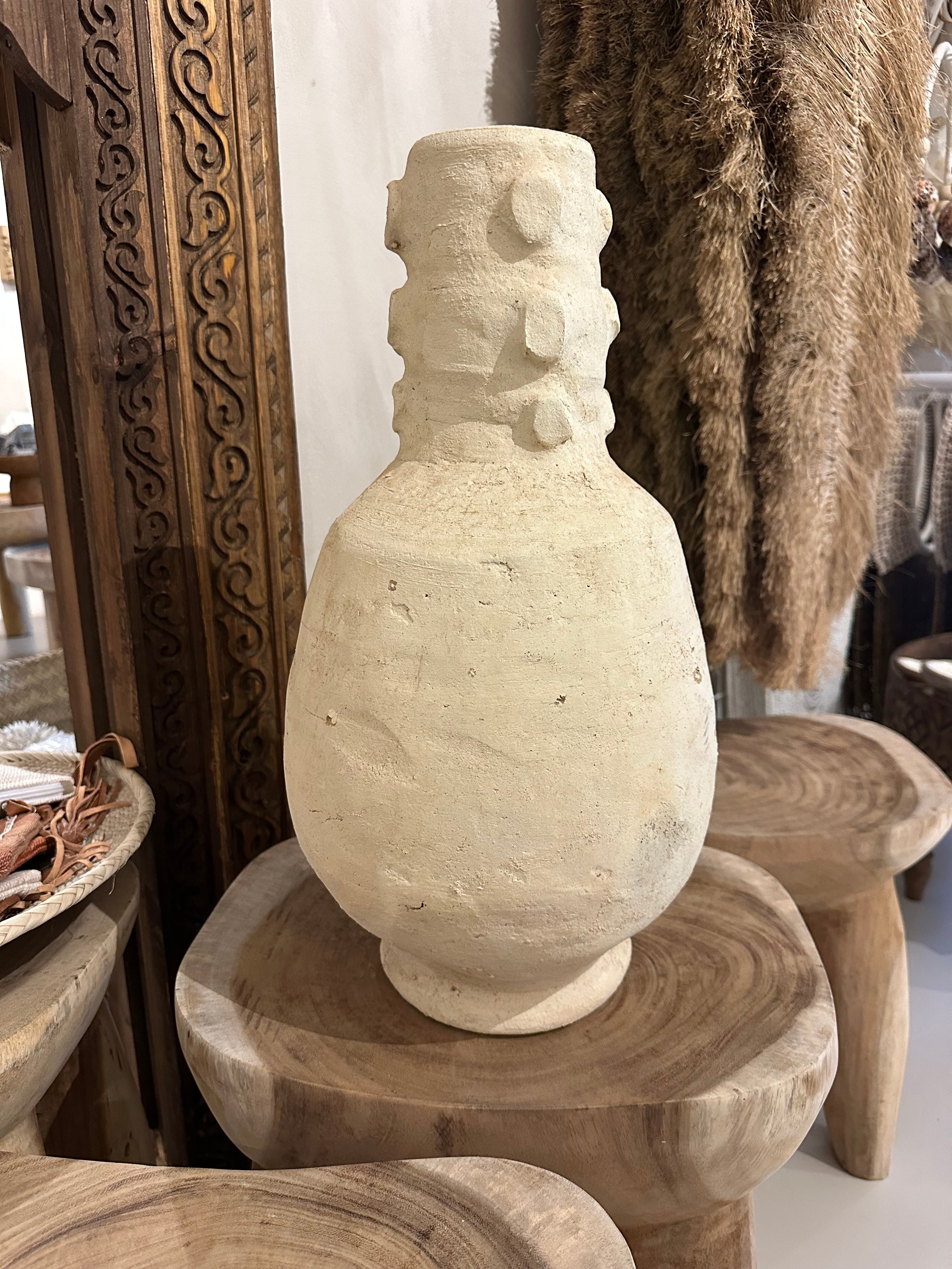 De warme terra en naturel gemêleerde tinten geven de vaas een natuurlijke, doorleefde uitstraling die moeiteloos past in zowel een modern als een bohemien interieur. Dankzij het ambachtelijke proces is geen enkel exemplaar hetzelfde, kleine verschillen in vorm, kleur en afmeting maken juist de charme en authenticiteit van dit bijzondere stuk uit.