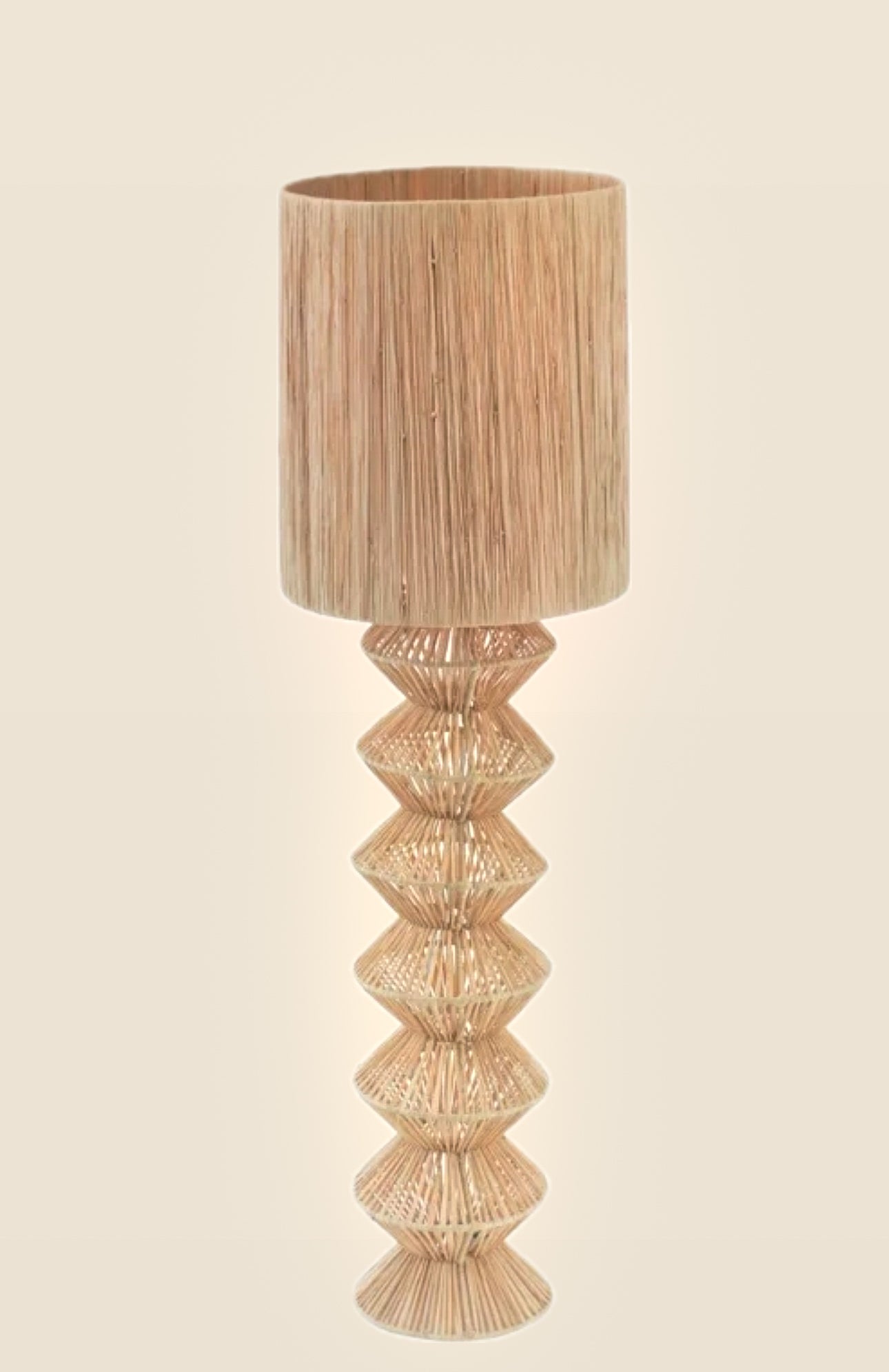 De vloerlamp Tazira is een waar kunstwerk van ambacht en natuurlijk design.