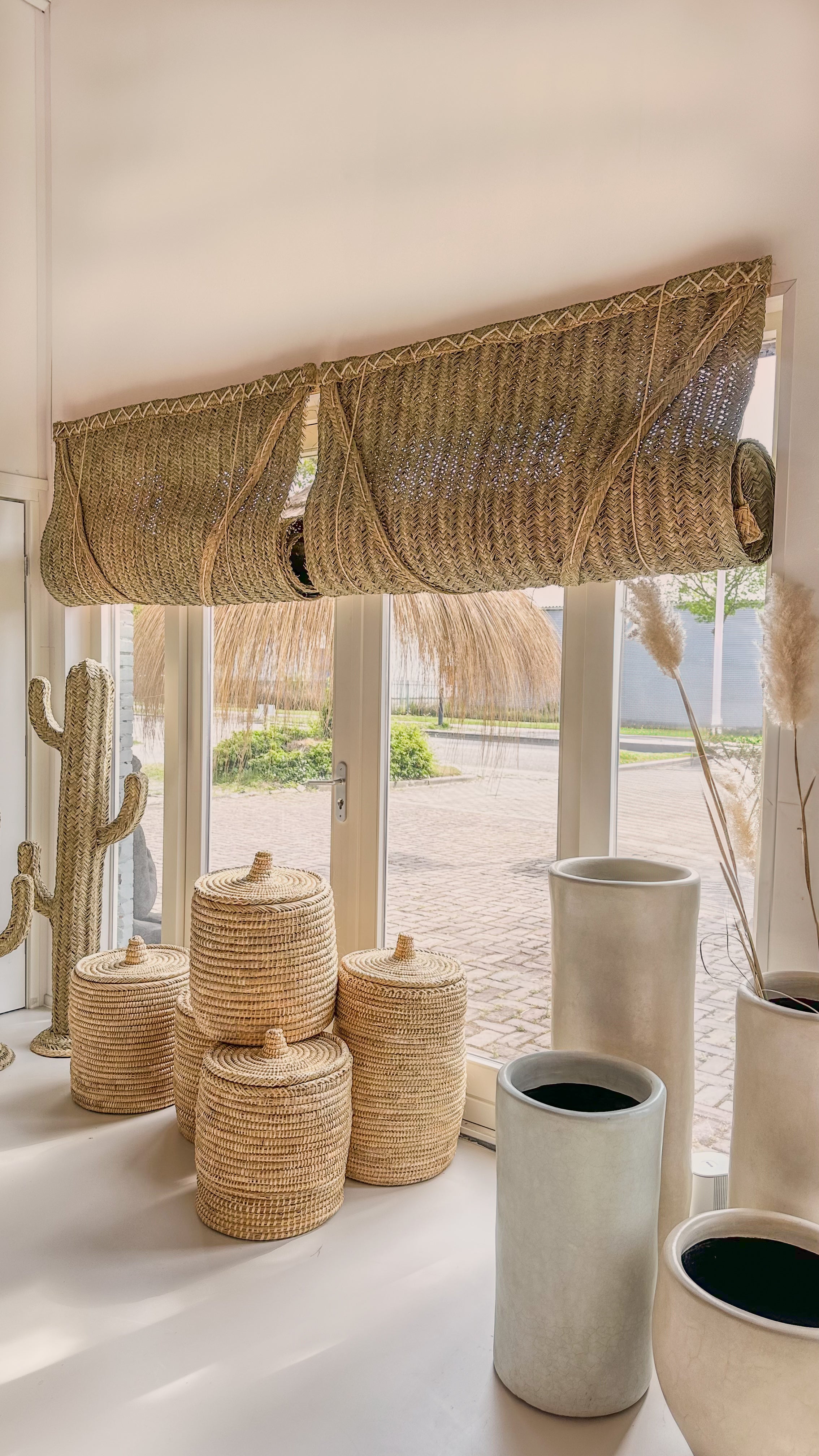 Breng warmte, karakter en een ambachtelijk tintje in je interieur met onze handgeweven zeegras rolgordijnen uit Marokko.